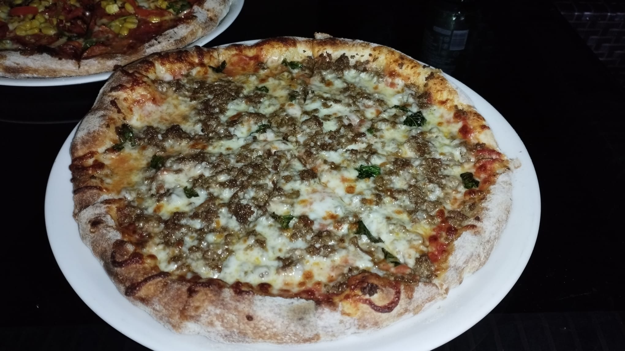 Am ales să comandăm o pizza care poartă denumirea localului și una picantă. „Pizza lu’ Enzo” conține carne de vită tocată, ceapă roșie, sos de roșii, unt, mentă, sare și piper. Aflăm că cea picantă se numește Mexicană, nu Diavola, cum suntem deprinși în celelalte pizzerii. Așa că am ales-o pe ea, chiar dacă are porumb – eu unul evit porumbul în pizza, dar de data asta îmi era foame și am zis să-i dau o șansă. Știind că durează câteva minute până se face o pizza, mai ales că nu e de cea congelată, am rugat-o pe tânăra ospătăriță să ne aducă ceva de băut: o bere și un suc fresh de portocală cu ananas.