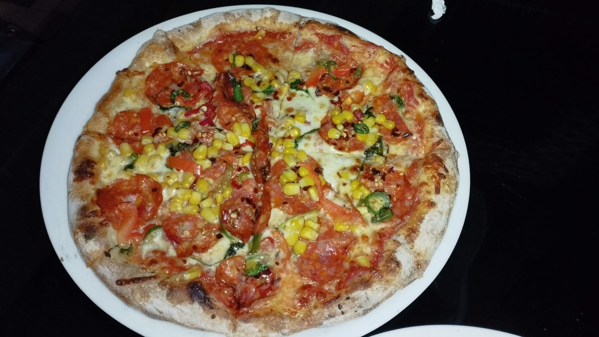În ceea ce privește „Pizza Mexicană – picant”, în meniu scria că are mozzarella, salam chorizo, ardei, porumb, ardei iute, sos roșii picant, coriandru. Inedit, mi-am spus, față de obișnuita Diavola. Și într-adevăr a fost foarte bună pizza asta și... porumbul a dat gustul principal. De picant, era picant atât cât trebuie, iar coriandrul – pe care nu-l prefer în mâncăruri – nu l-am simțit. Și bine a fost așa.