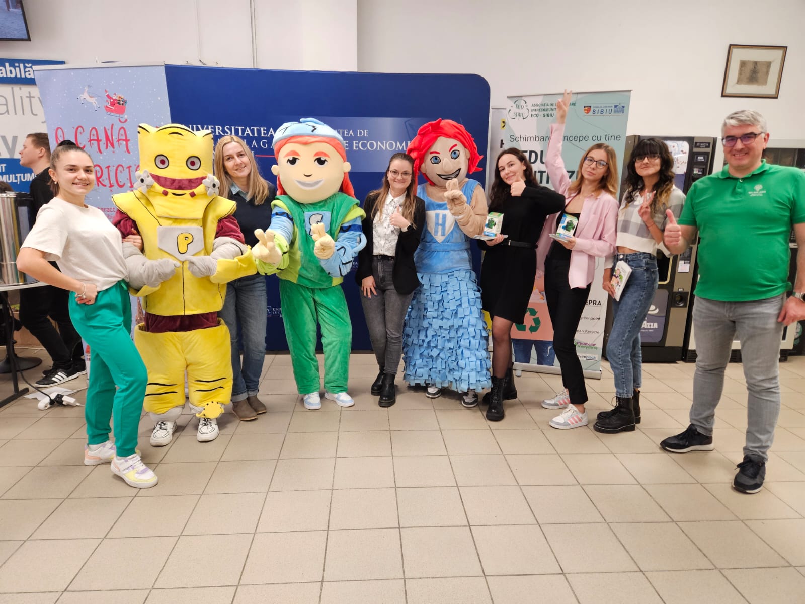 „Un prim eveniment a fost organizat în 21 Noiembrie, împreună cu cei de la AdiEco, prin care, cu ajutorul mascotelor, am informat studenții despre colectarea selectivă și corectă a deșeurilor. Cel de al doilea eveniment constă într-un giveaway pe pagina de instagram care o să aibă ca premiu un voucher la „Xcape Room Sibiu”. Data limită de participare la giveaway este în aceasta vineri, 1 Decembrie, iar toate detaliile le găsiți pe pagina noastră de Instagram”, au mai transmis cele patru studente.