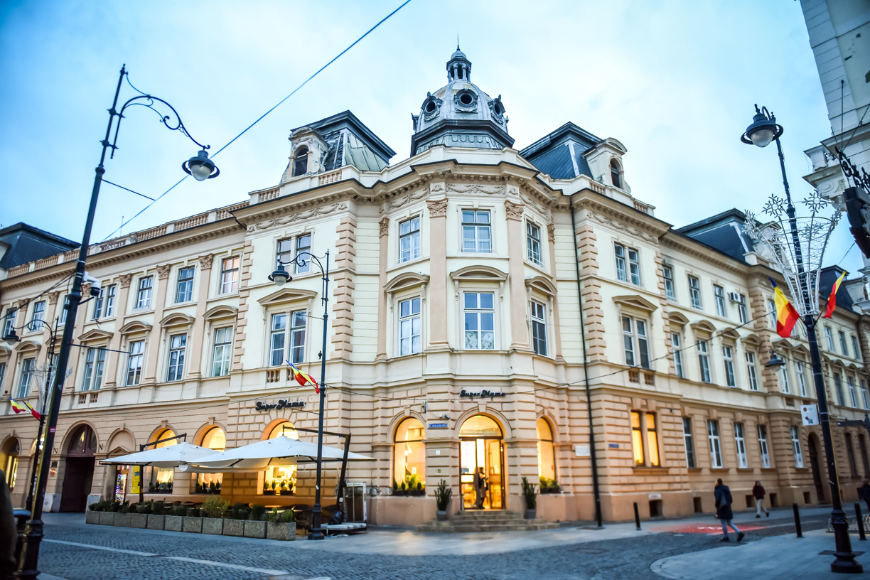 ”Pe actualul amplasament al clădirii, a funcționat inițial hanul “La sultanul Turcilor “(1555) care își va schimba denumirea în “La Steaua Albastră“ și începând din anul 1772, va purta numele de “Împăratul Romanilor”, după ce aici a poposit împăratul habsburgic Iosif al II-lea.