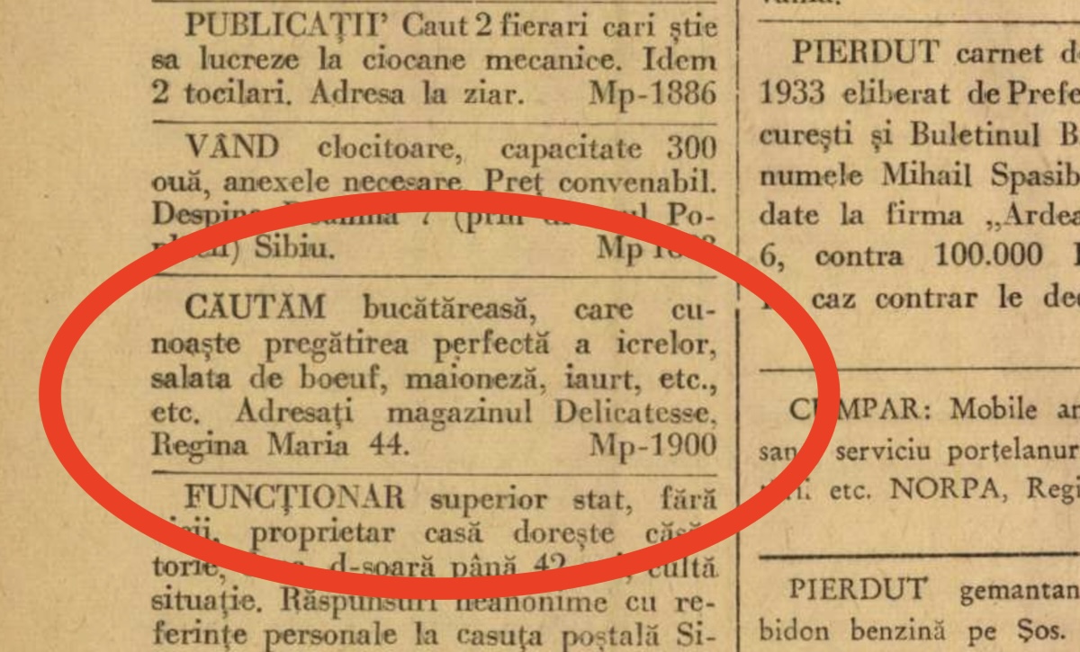 În Sibiu se căuta bucătăreasă care să știe să facă salata de bouef”