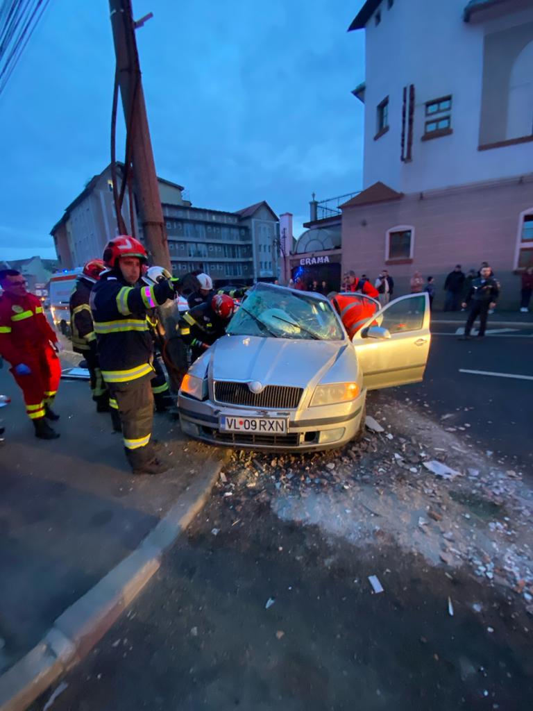 Un grav accident de circulație a avut loc sâmbătă seara în municipiul Sibiu, pe strada Nicolae Teclu, o mașină lovind puternic un stâlp.