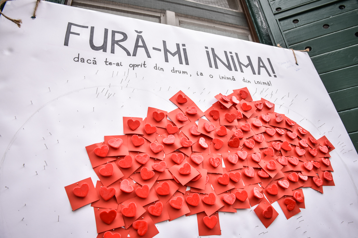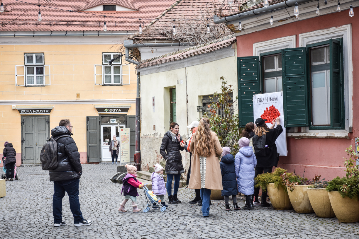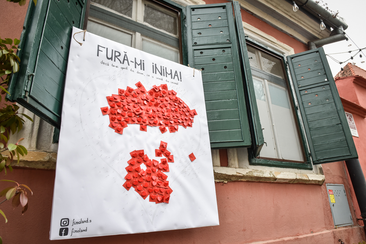 Proiectul prin care Silvia Brus, fondatoarea brandului Fimoland, și-a propus să ofere gratuit insigne în formă de inimioare, a continuat și anul acesta. Panoul plin cu 500 de inimioare a fost așezat în această dimineață în Piața Huet, iar mulții dintre sibieni au venit special în piață ca să-și ia acasă inimioara.