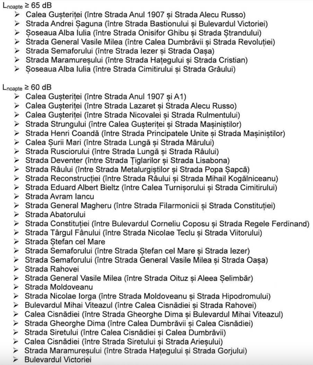 Depășiri ale nivelului de zgomot se înregistrează și pe următoarele artere: