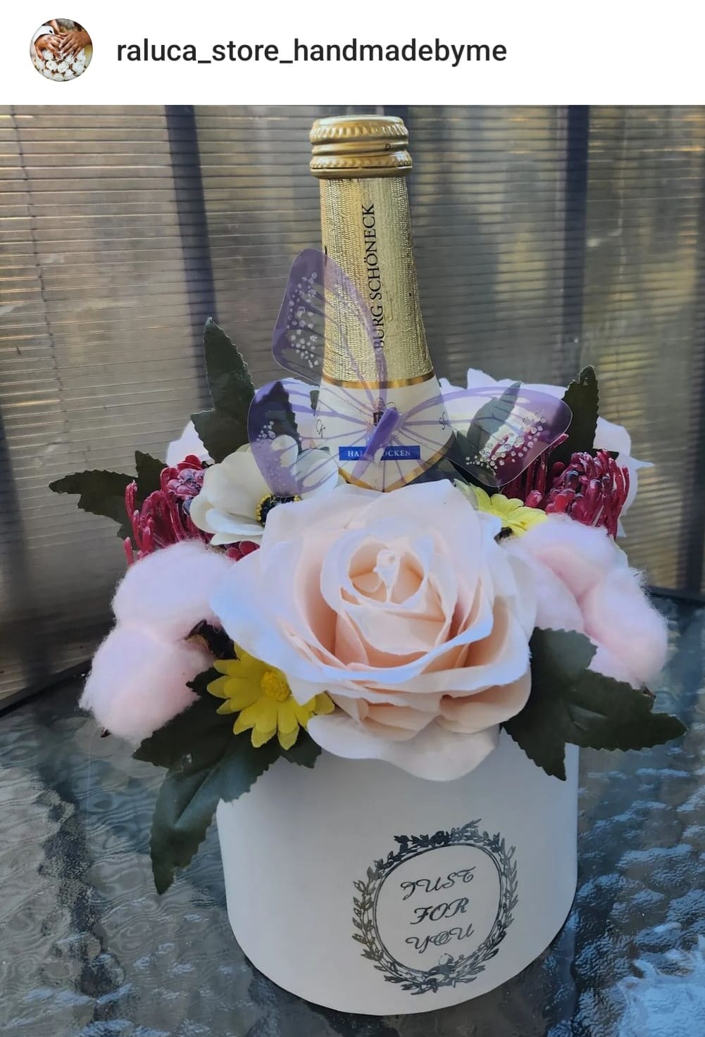 Ioana Ianculovici are 37 de ani, este din Sibiu și profesează în domeniul comercial. Din pandemie, tânăra și-a descoperit, întâmplător, jucându-se cu fiul ei, pasiunea pentru hand-made. De atunci, pe lângă locul de muncă principal pe care îl are, Ioana face și aranjamente și accesorii pentru nunți și aniversări. Le confecționează din flori de săpun, flori uscate sau criogenate, dar și flori naturale, la cerere.