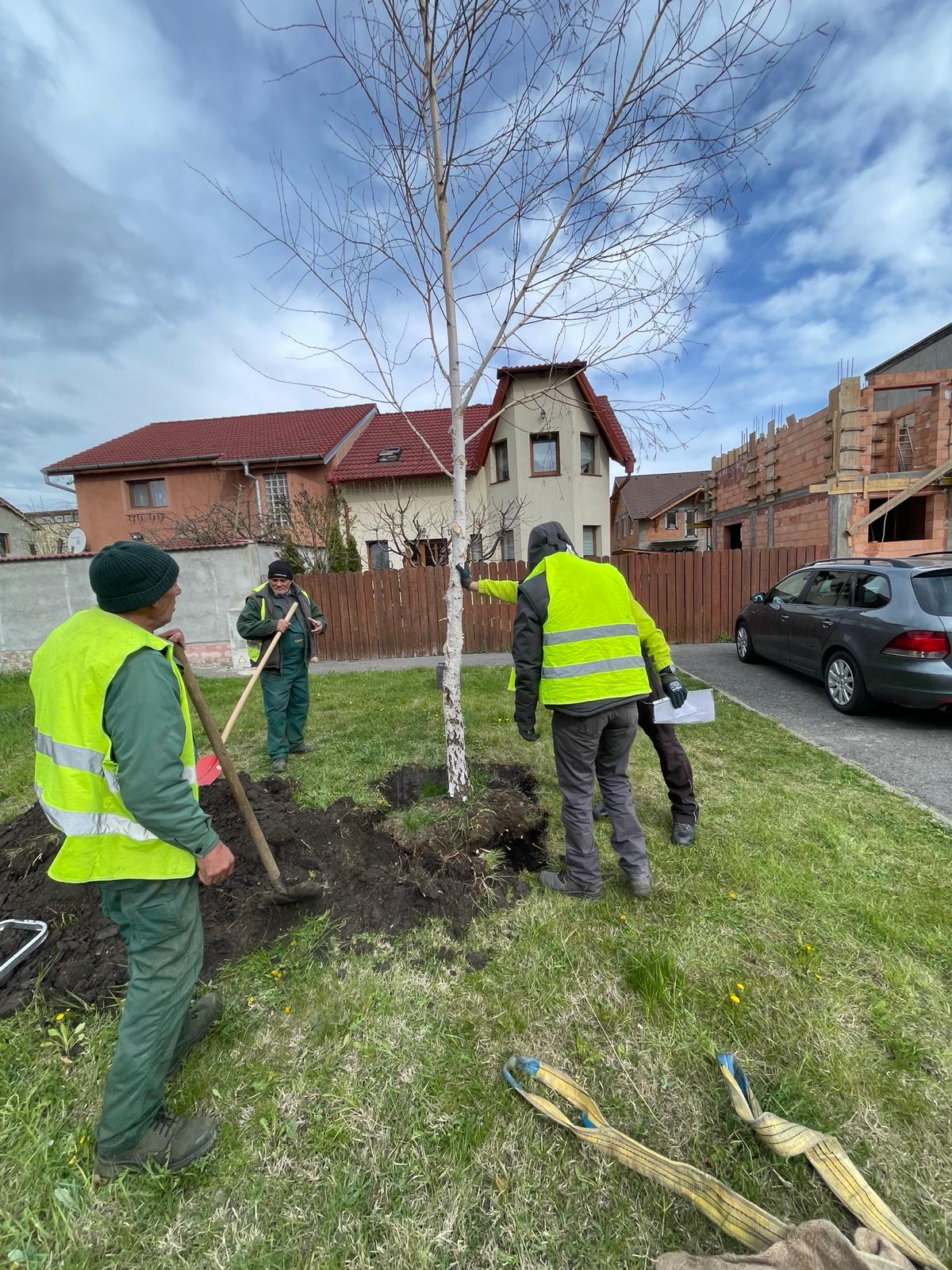 Primăria Sibiu a transplantat joi patru arbori pe o stradă din oraș, cu scopul de a-i proteja pe timpul lucrărilor de modernizare.
