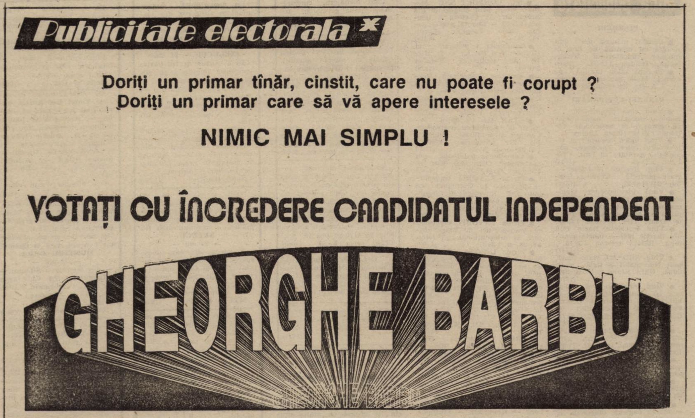 Sursa foto: reclame electorale din campania din 1992, publicate în presa locală
