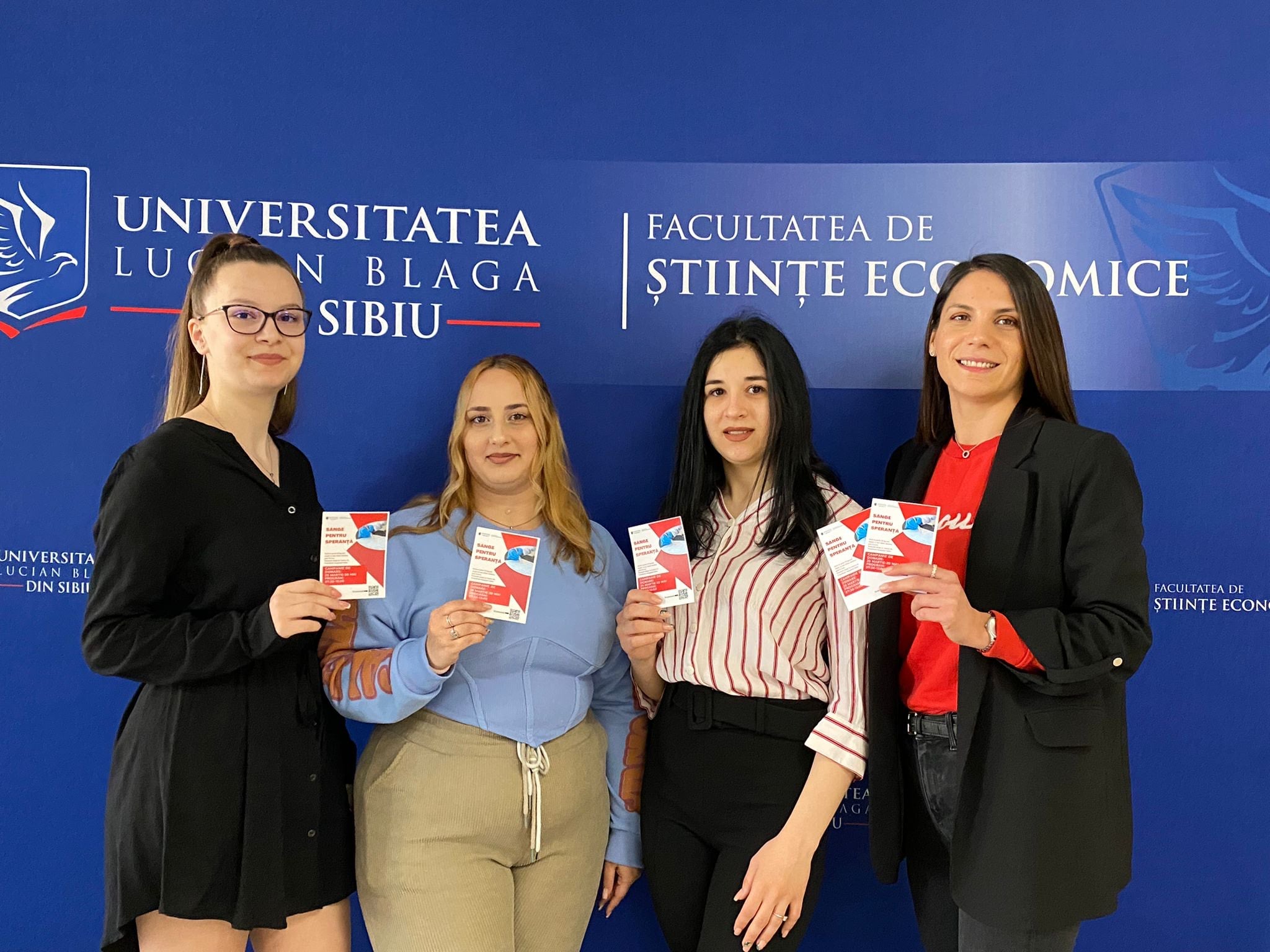 Patru studente de la Facultatea de Științe Economice, Universitatea „Lucian Blaga” din Sibiu au organizat în 10 aprilie campanie de informare „Sânge pentru Speranță”. Florentina Udrea, Silvia Toader, Ștefania Simptea și Denisa Varga Denisa, susținute de profesorii lor îndrumători studentele care au pus la cale o campanie care a urmărit să promoveze donarea de sânge și să ofere o șansă la viață pentru cei aflați în nevoie.