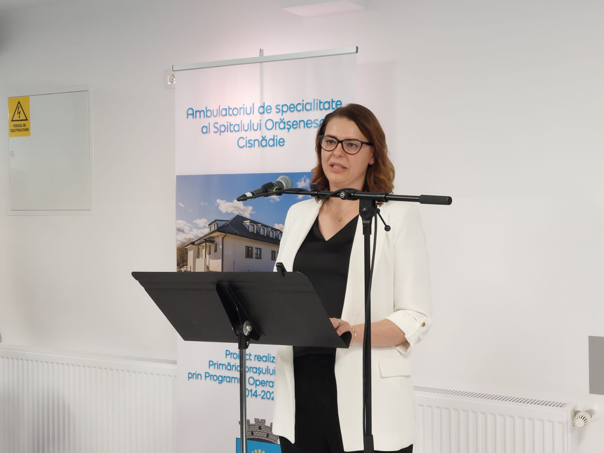 Delia Minca, managerul Spitalului din Cisnădie a vorbit despre aparatura modernă, despre personalul dedicat și despre spațiile moderne la care cisnădienii vor putea apela fără a mai merge la Sibiu. De asemenea, a punctat o serie de proiecte care au fost terminate sau care se află în derulare și care sunt menite să ridice standardele vieții medicale din Cisnădie.