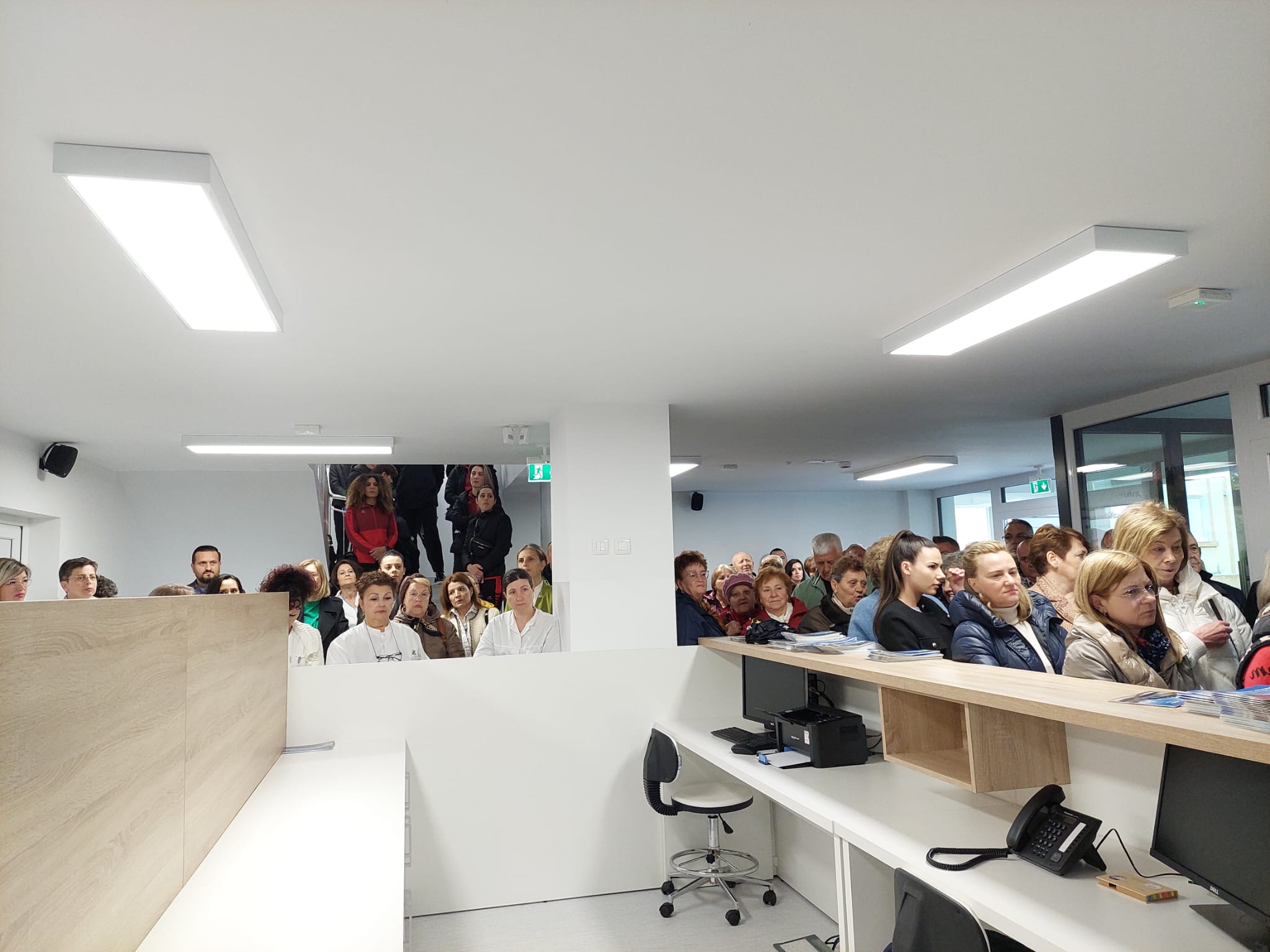 Într-un cadru festiv, la parter, unde este recepția policlinicii, s-a făcut inaugurarea lucrărilor în prezența a zeci de invitați. Pe lângă primarul Gheorghe Huja, și managerul Spitalului Orășenesc din Cisnădie, Delia Minca, la eveniment au participat Ministrul Culturii, Raluca Turcan, președinta Consiliului Județean, Daniela Câmpean, șefi de instituții și de alte unități medicale, reprezentanți din mediul de afaceri, dar și primari din alte localități. Printre invitații speciali s-a numărat și Dorina Dăncăneț, fostul manager al spitalului din Cisnădie și cea care a început proiectul.
