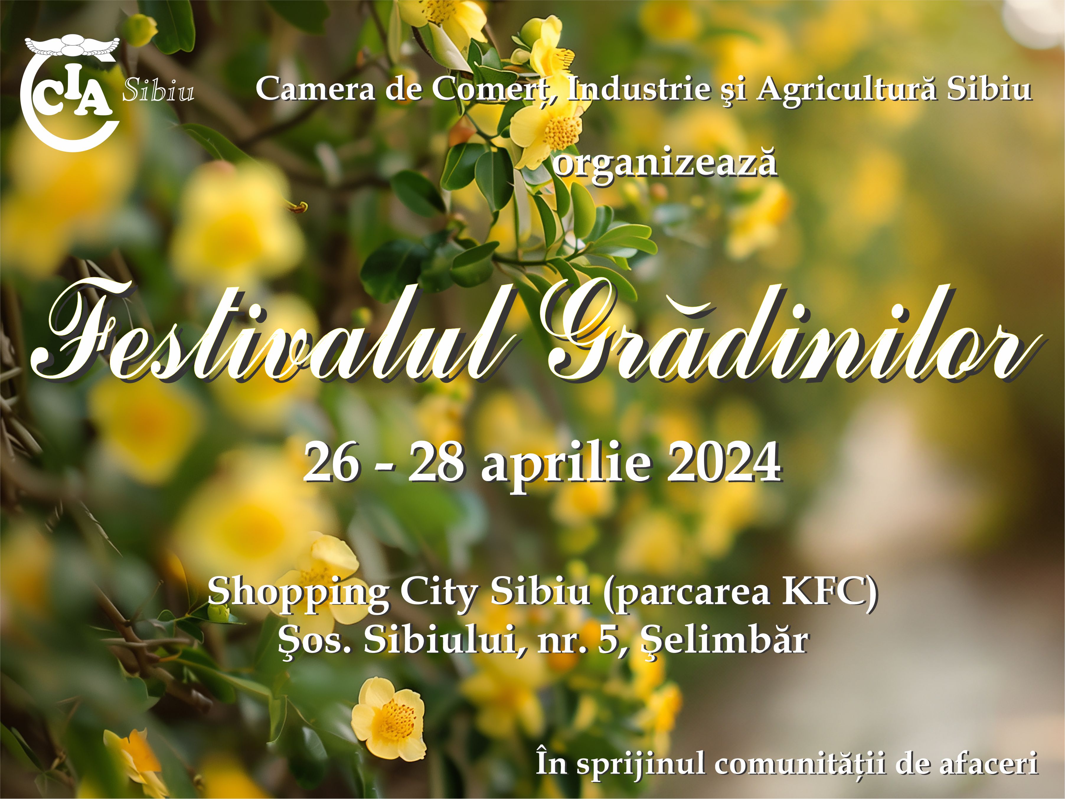 Camera de Comerţ, Industrie şi Agricultură Sibiu organizează în acest weekend la Sibiu festivalul Grădinilor care va avea loc în Parcarea de la Shopping City.