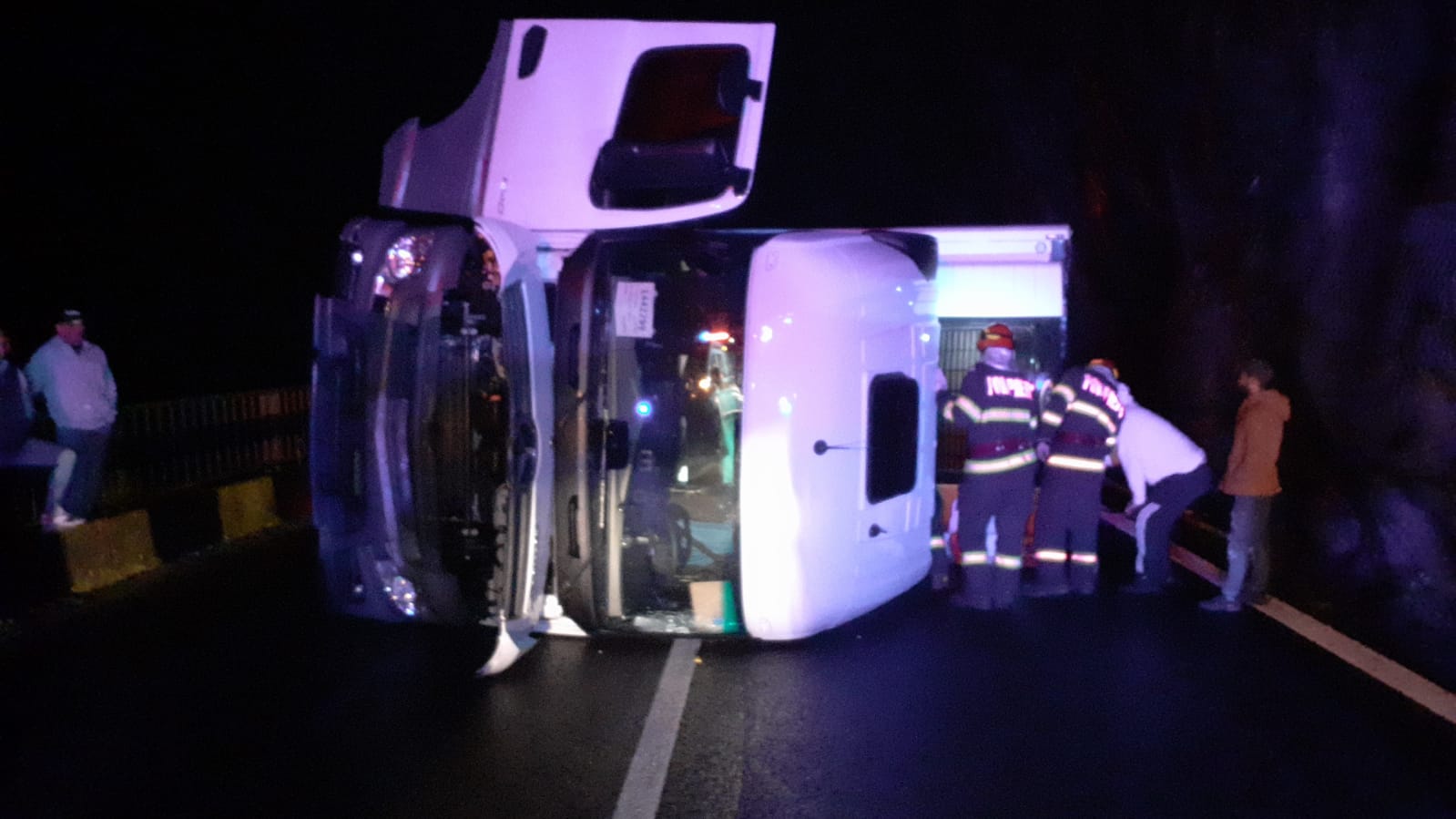 Din primele verificări efectuate de polițiști, s-a stabilit că șoferul unui autotren s-a răsturnat pe șosea în dreptul comunei Călimănești, din cauze care urmează să fie stabilite în urma cercetărilor.