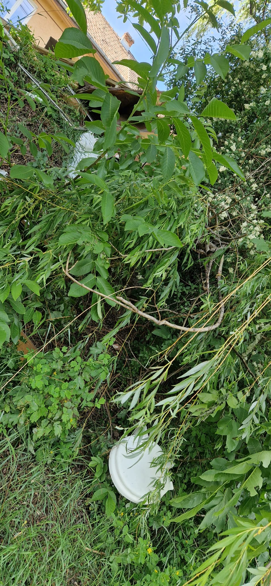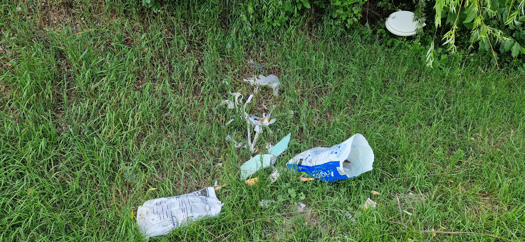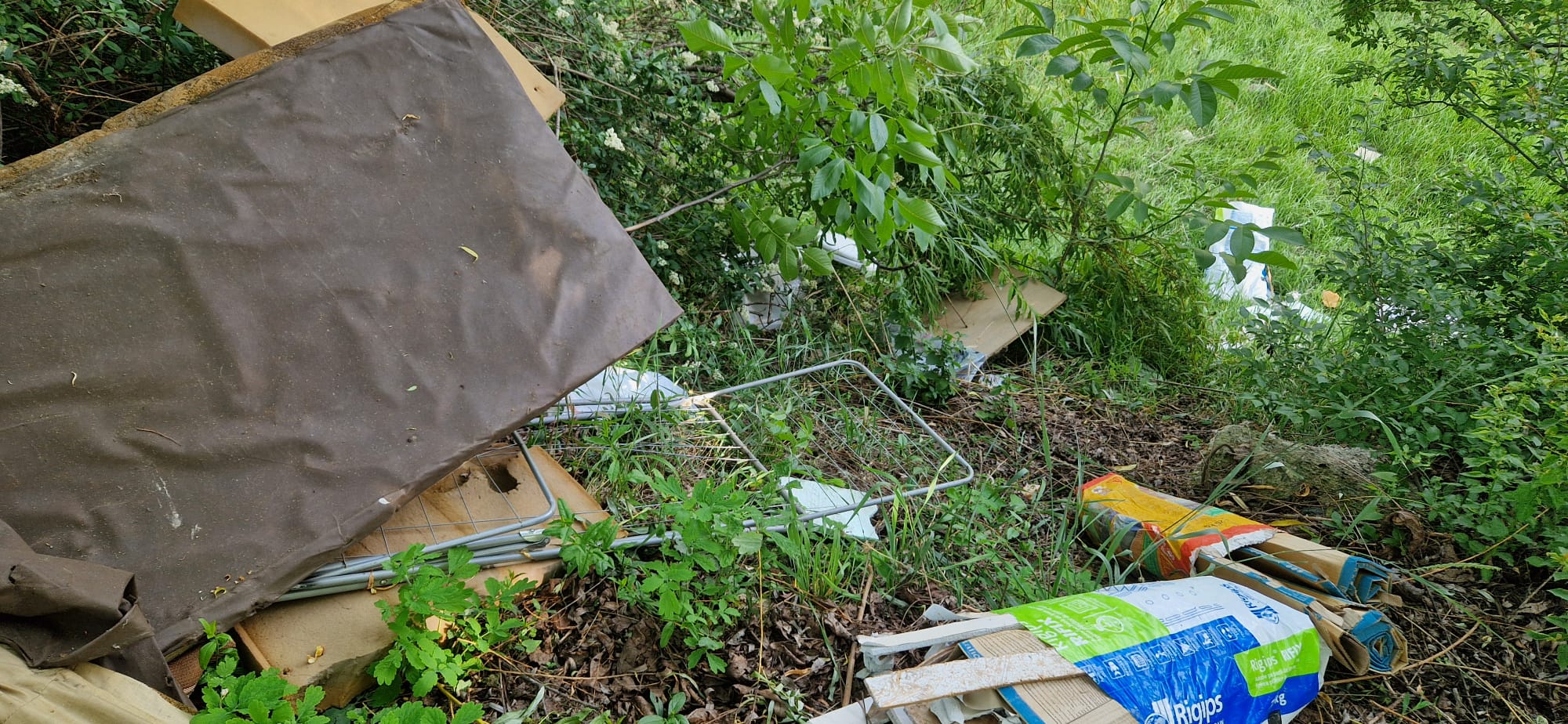 Autorul mizeriei a adus o canapea foarte veche, mai mulți saci plini cu moloz, un capac de WC, ceva rămășițe din materiale de construcții, un uscător de haine și elemente de grădinărit din curte, printre altele.