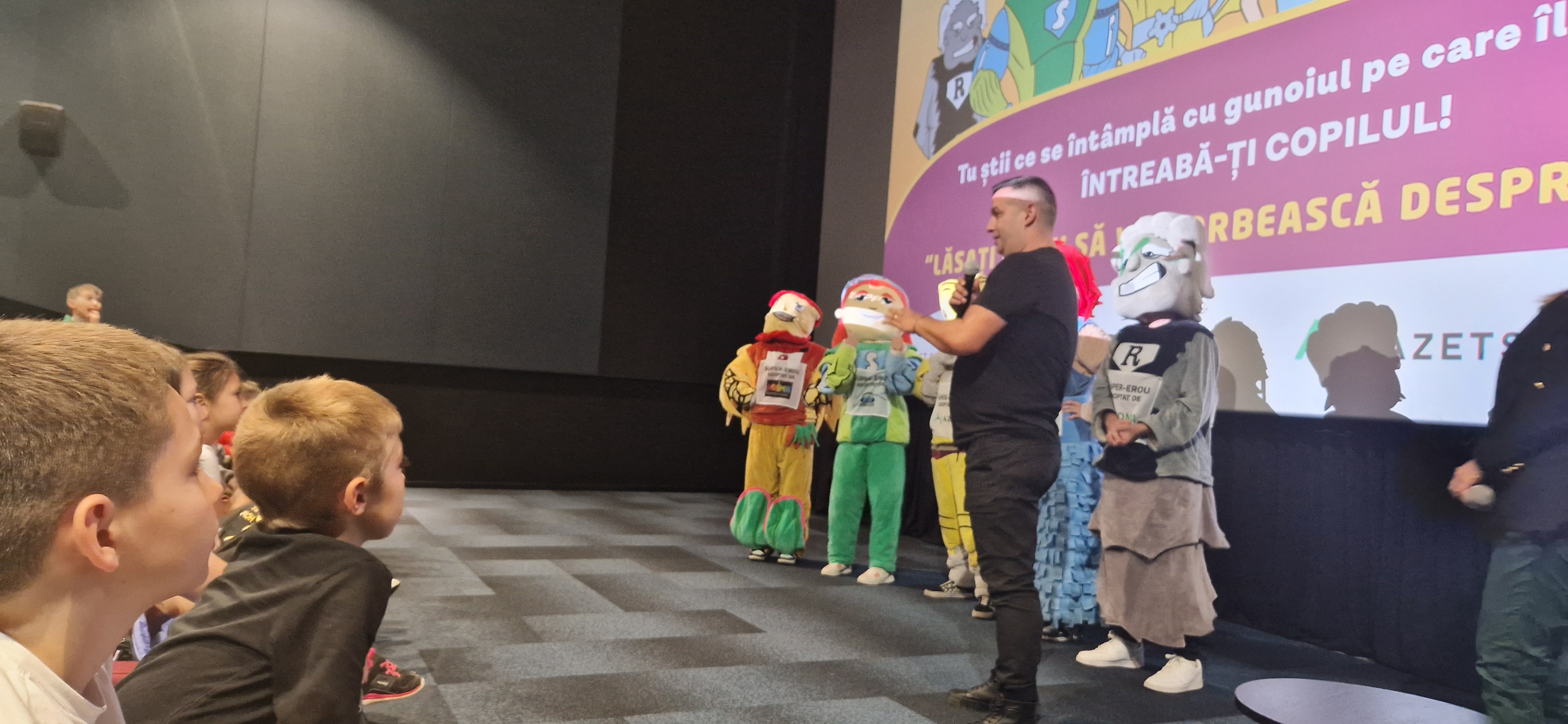 După ce au fost conduși în sălile CineGold, cei mici au asistat un moment artistic, pregătit special pentru ai de actrița Teatrului Gong, Raluca Răduca. Ea a dat viață personajului Mirciulică, aventurile lui fiind foarte gustate și aplaudate de copii. A urmat vizionarea unor filme documentare educative, în care copiilor li s-a explicat impactul negativ asupra mediului înconjurător al deșeurilor nereciclate.