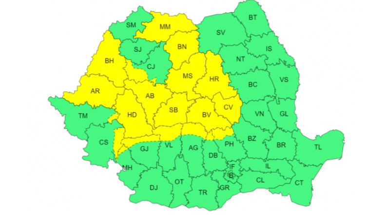 „În zonele montane, în Crișana și local în Maramureș și Transilvania vor fi perioade cu instabilitate atmosferică. Aceasta se va manifesta prin intensificări ale vântului, vijelii (viteze în general de 55...65 km/h), averse, descărcări electrice și izolat grindină. În intervale scurte de timp cantitățile de apă vor fi de 20...30 l/mp și izolat de peste 40 l/mp”, se arată în informarea transmisă de meteorologi.