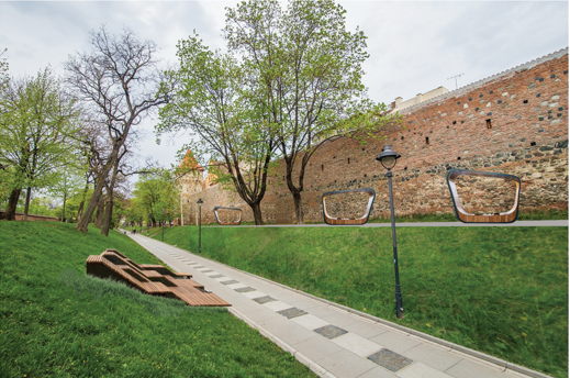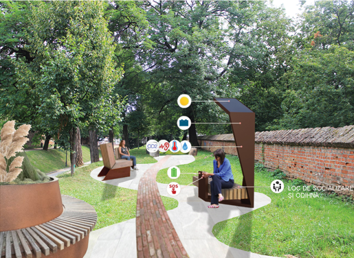 În Parcul Cetății se vor crea noi alei, iar cele existente vor fi reamenajate cu materiale naturale, vor fi create alveole de relaxare cu bănci smart și deosebite ca design, iar iluminatul va fi îmbunătățit.