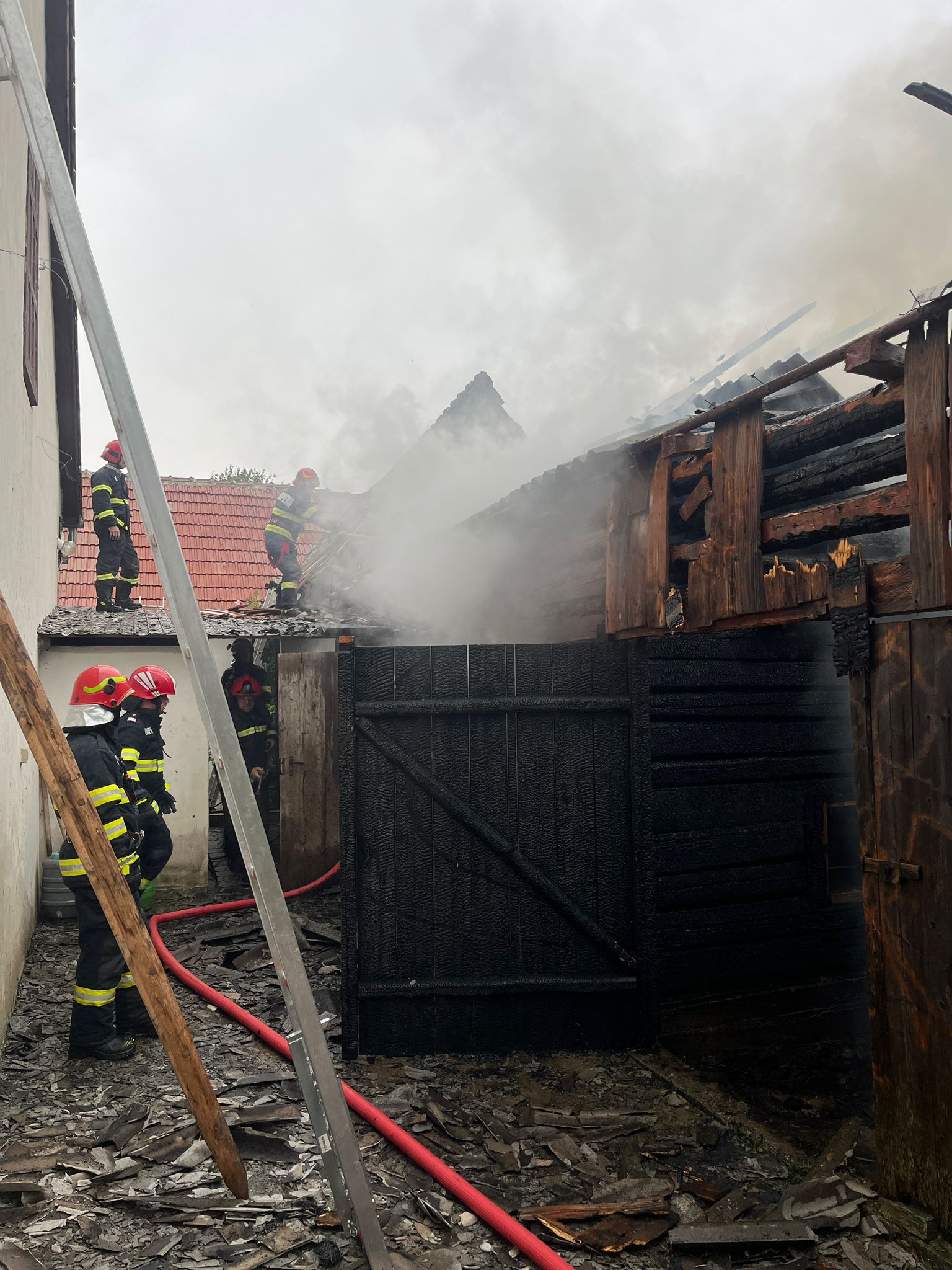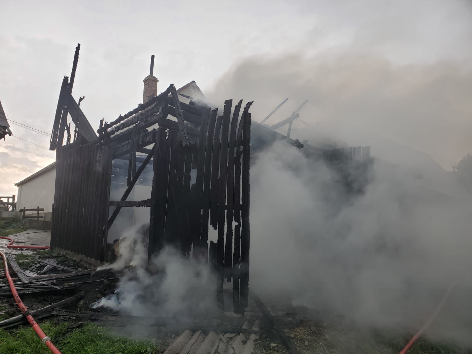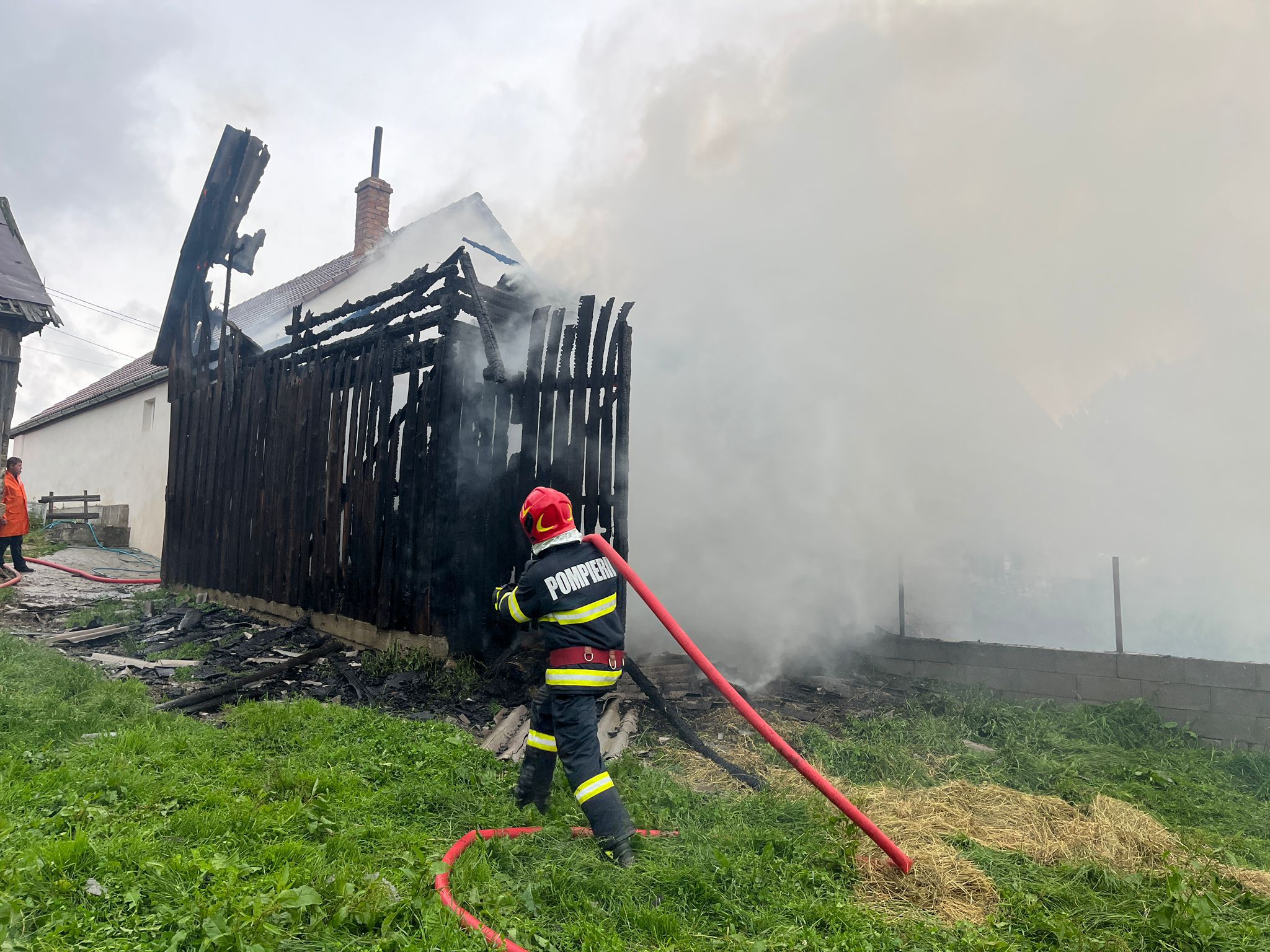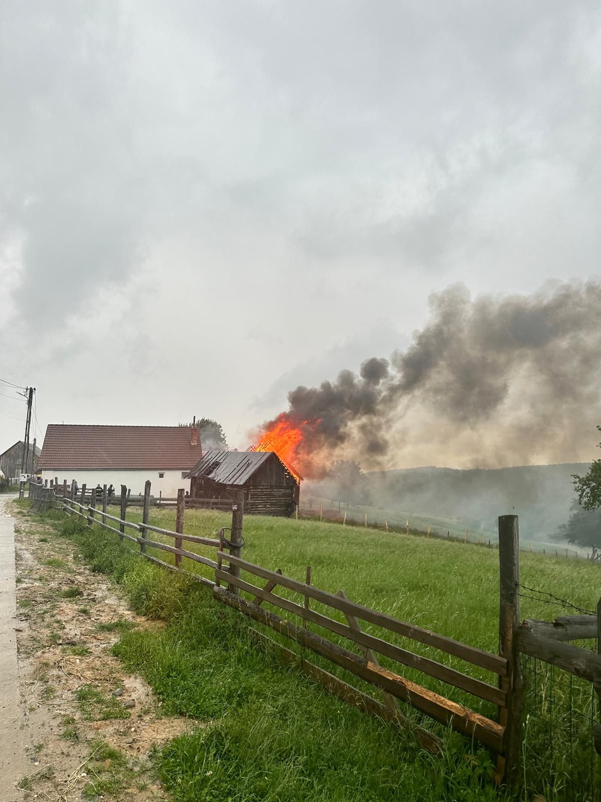 Reprezentanților Inspectoratului pentru situații de urgență Sibiu le-a fost solicitată intervenția și la Jina, unde un fulger a lovit o șură plină cu fân. Patru autospeciale de stingere, însoțite de un echipaj SMURD, au fost alocate incendiului izbucnit, în sprijin venind și voluntarii din comună. „La sosirea forțelor incendiul se manifestă generalizat la întreaga anexă, existând riscul de propagare și la casă. Pompierii au acționat prompt și au limitat extinderea incendiului, astfel casa a fost salvată. Din păcate anexă gospodărească a ars în totalitate, aceasta fiind construită din lemn. De asemenea, a ars și fânul depozitat în interior - aproximativ 5000 de kg”, transmit reprezentanții ISU în atenția cititorilor Turnul Sfatului.