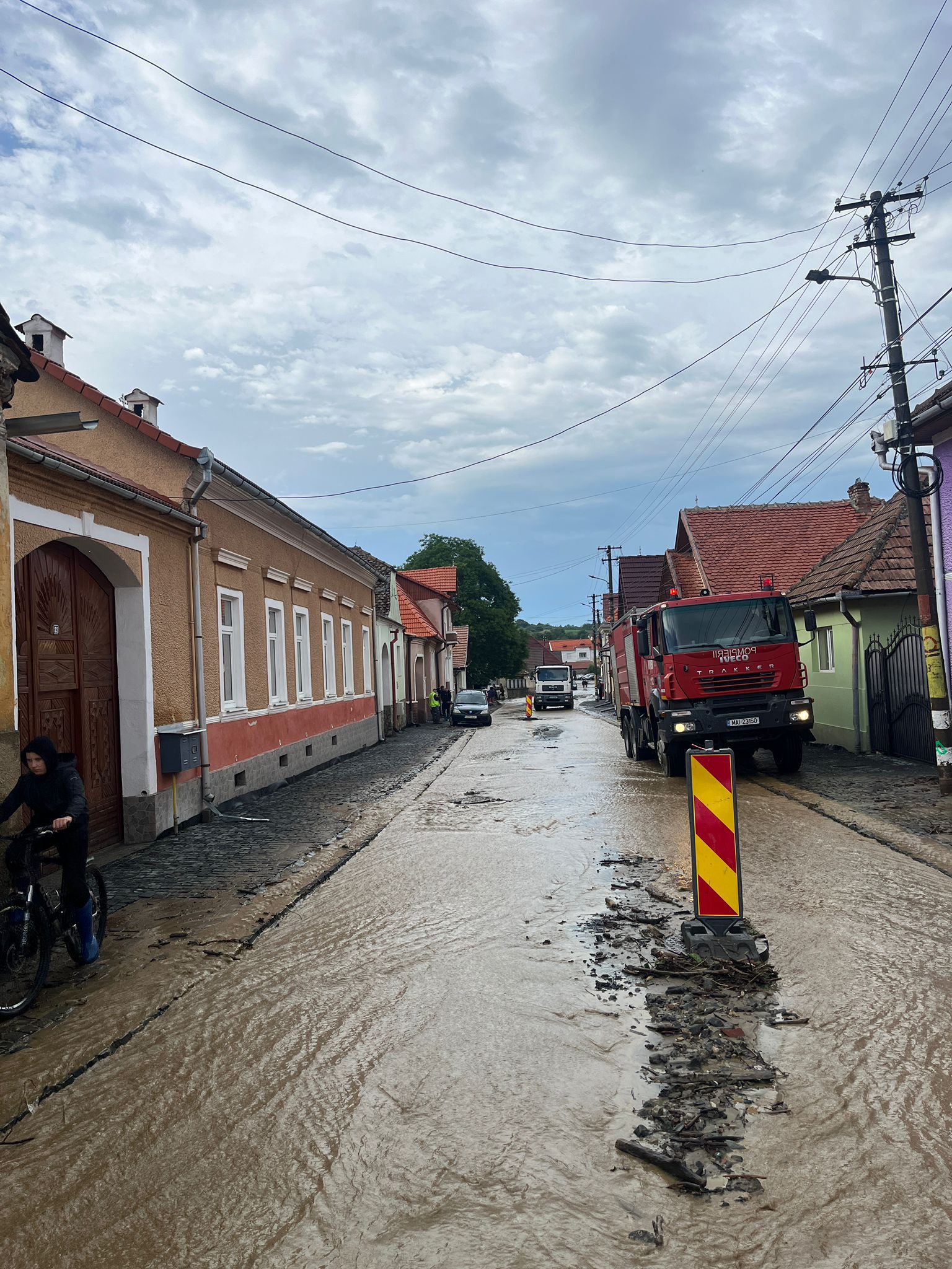 „Pompierii sibieni au intervenit în localitatea Săliște pentru a evacua apa din 4 gospodării inundate și în localitatea Mag pentru a evacua apa dintr-un subsol. De asemenea s-a intervenit pe strada Podului din municipiul Sibiu pentru stingerea unui incendiu la un copac care a fost lovit de descărcări electrice (fulger)”, anunță pompierii sibieni.