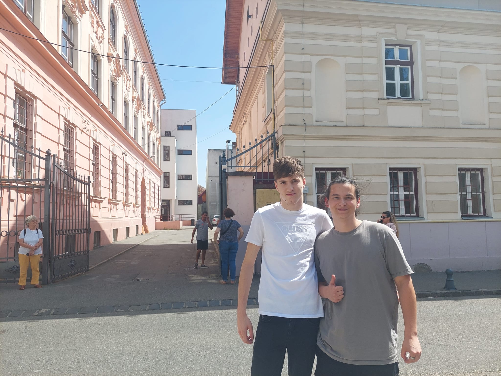 Nicoleta și Mădălina s-au întâlnit să vorbească chiar la poarta colegiului. În acest centru de examen au susținut probele elevii de la Lazăr, dar și cei de la Colegiul Brukenthal, marea lor majoritate terminând un profil real.