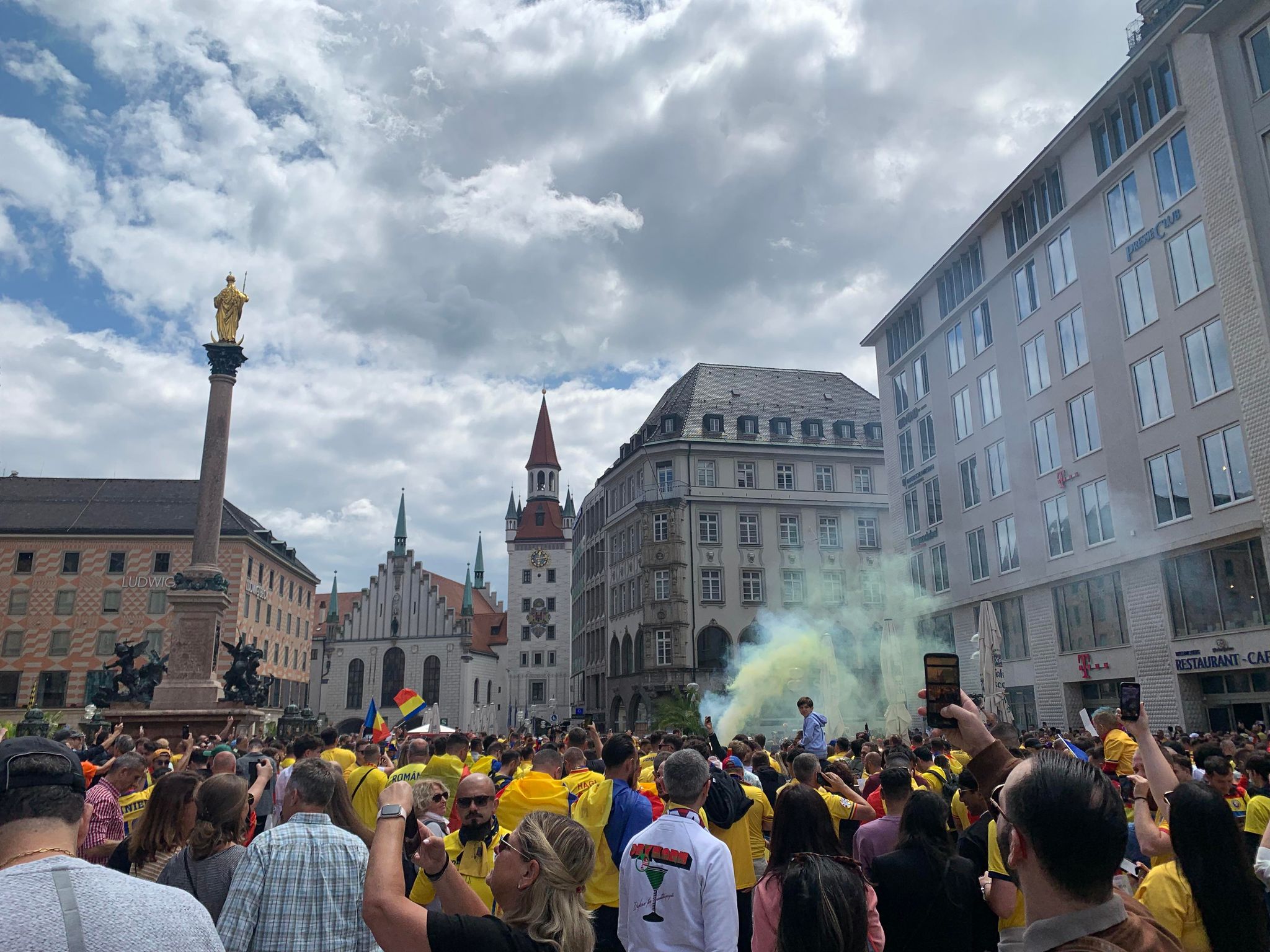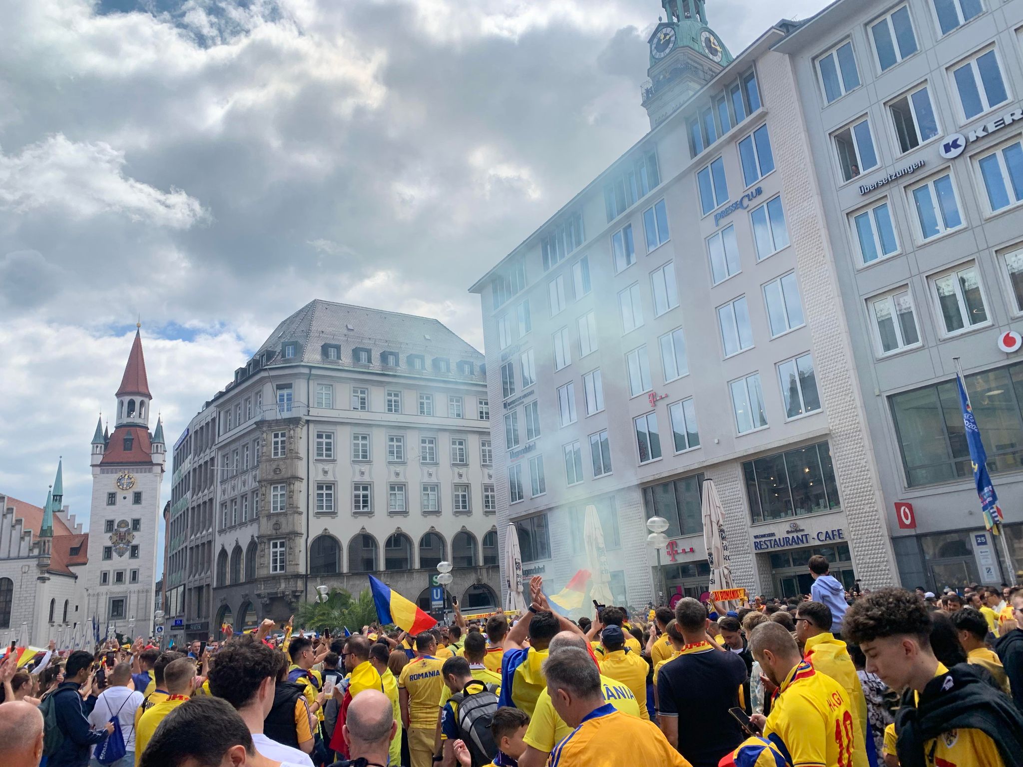 Sute de românii au umplut străzile din Munchen și cântă imul național înaintea meciului de la ora 19, împotriva Olandei, în optimile de finală ale EURO 2024.