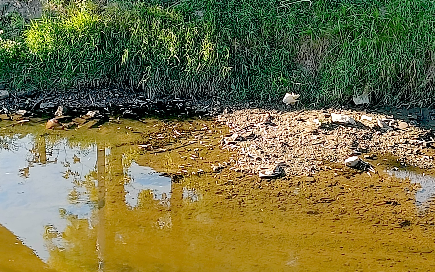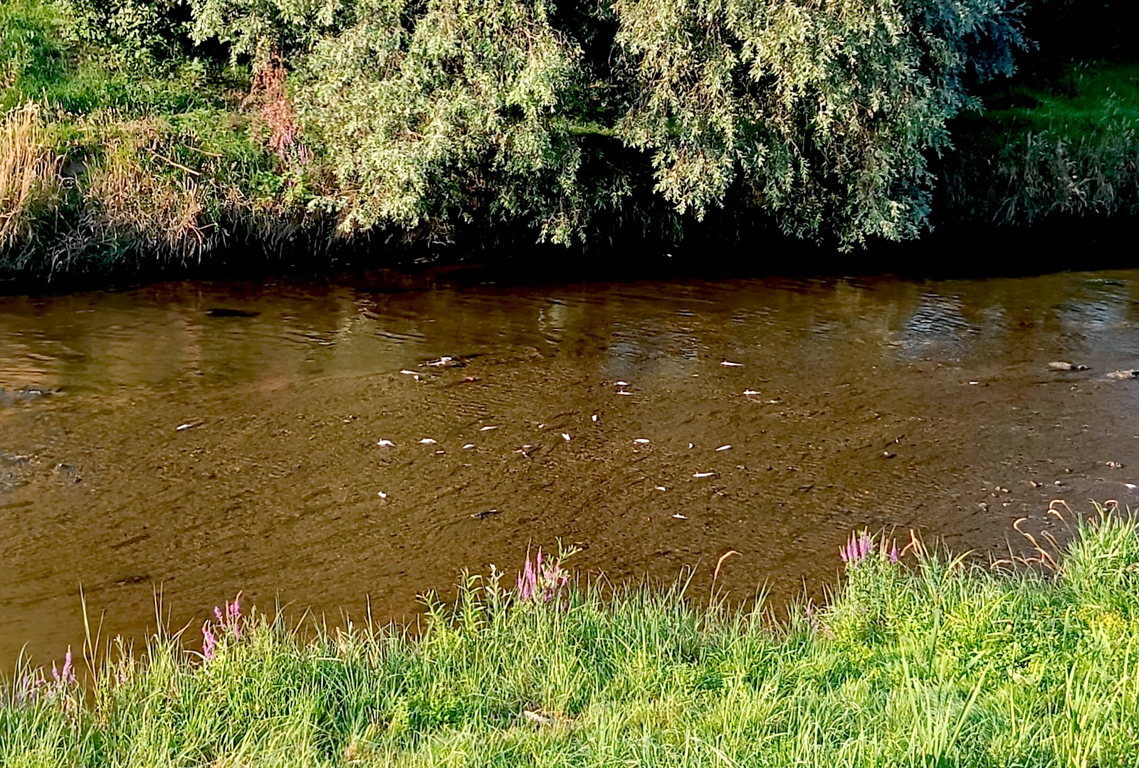 În municipiul Sibiu, în zona străzii Viitorului, oamenii au intrat în apă și au început să adune peștii morți cu mâna, cu scopul de a-i mânca.