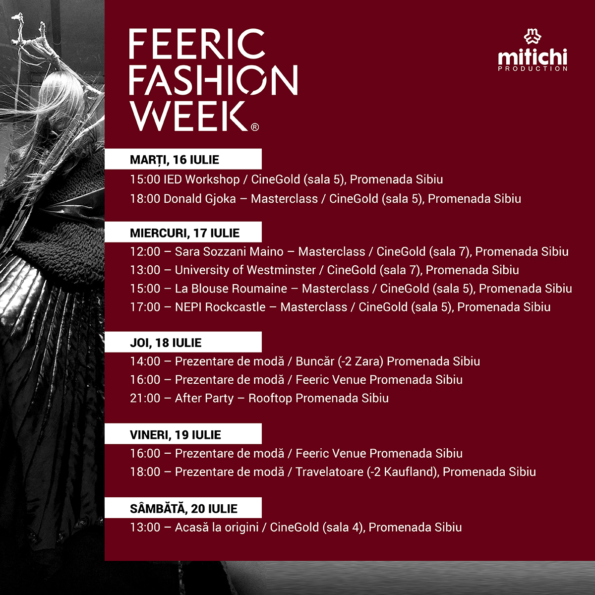 Mai multe informații despre evenimente și programul acestora pot fi găsite pe site-ul Promenada Sibiu și pe pagina oficială Feeric Fashion Week.