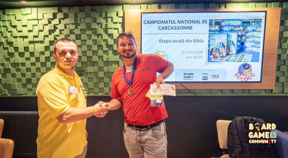 Sâmbătă, 20 iulie, a avut loc Etapa Locală Carcassonne Sibiu, eveniment ce a reunit 14 participanți dornici să-și demonstreze abilitățile în cadrul acestui joc de strategie. Competiția s-a desfășurat într-o atmosferă intensă și prietenoasă, la șapte mese, printr-un sistem Swiss în primele patru runde, urmat de un turneu eliminatoriu care a inclus optimile, sferturile, semifinalele și finalele, atât mare cât și mică.