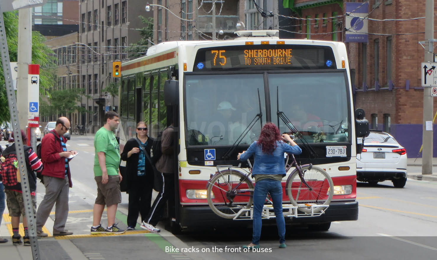Exemplu de suport de biciclete, folosit în Canada, pentru autobuze. Sursa foto: https://cycle-works.com/products/bus-racks/