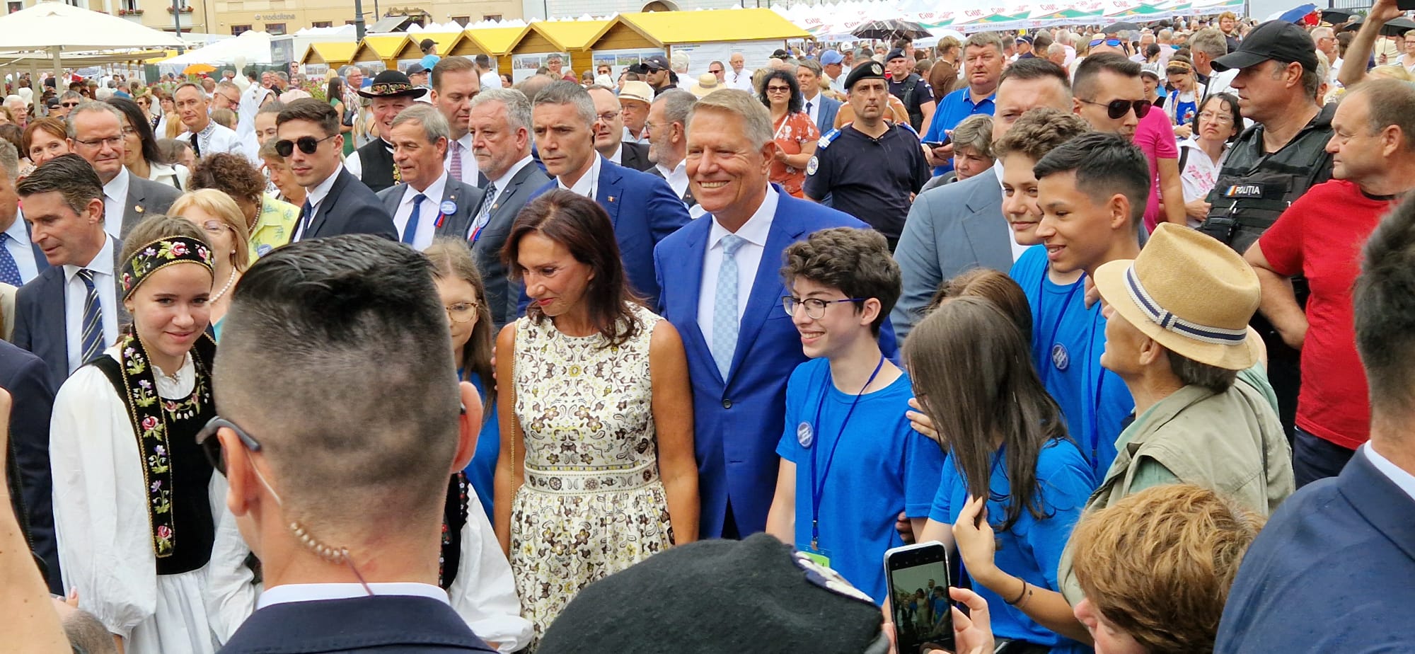 ”Îi felicit pe organizatori, doresc tuturor o reuniune de succes și vă urez bun venit în acest tărâm binecuvântat al Europei, unde ne regăsim împreună, deopotrivă în versul eminescian „ Ce-ți doresc eu ție, dulce Românie”, cât și în „Siebenbürgen, süsse Heimat, Unser teures Vaterland!”, a mai spus președintele la întâlnirea internațională a sașilor.