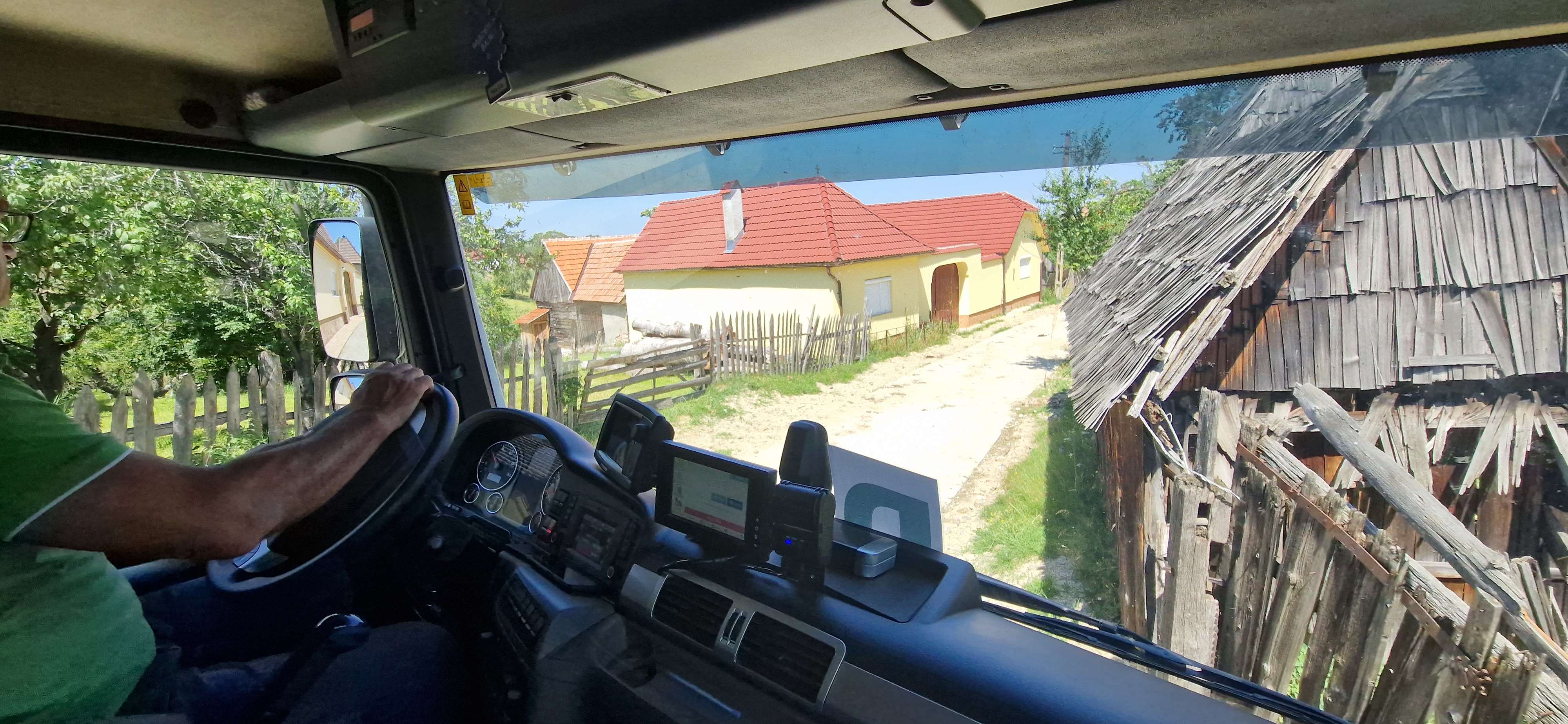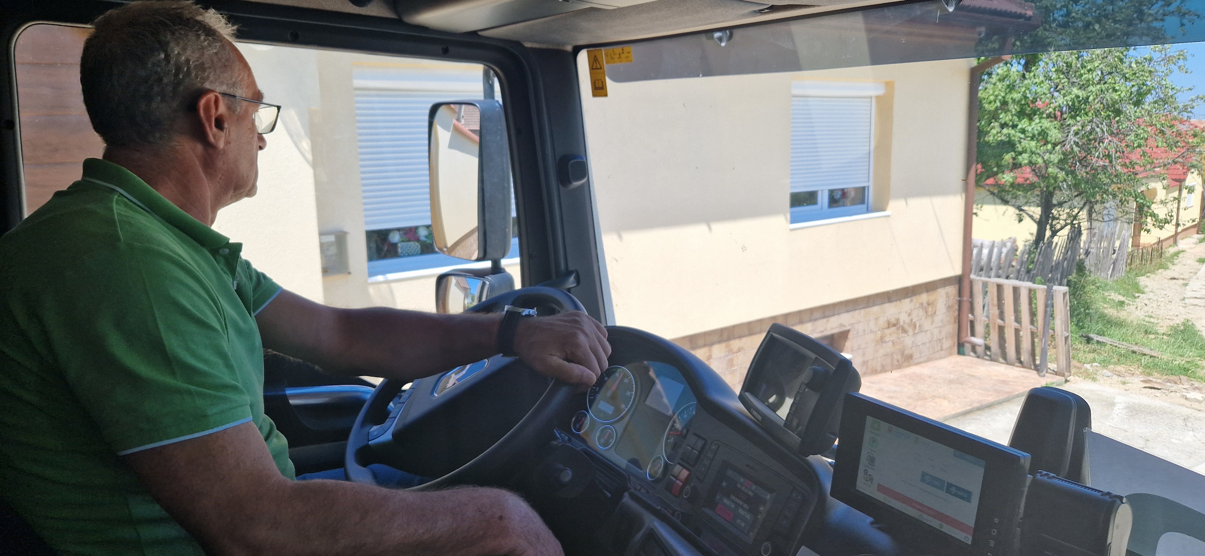 Și are dreptate, nivelul cabinei fiind la erajul unul al caselor lipite de străzile micuțe din comuna sibiană. Adesea conduce deasupra ferestrelor caselor. Pe urmă, numai un șofer cu multă experiență și atenție maximă ar putea circula, cumulat, kilometri întregi cu spatele printre case și mașini parcate la centimetri distanță de autospeciala Soma. ”Aici sunt niște responsabilități mari, nu există să tratezi munca aceasta cu superficialitate pentru să se va întoarce împotriva ta”, mai spune Ioan Cornel D..