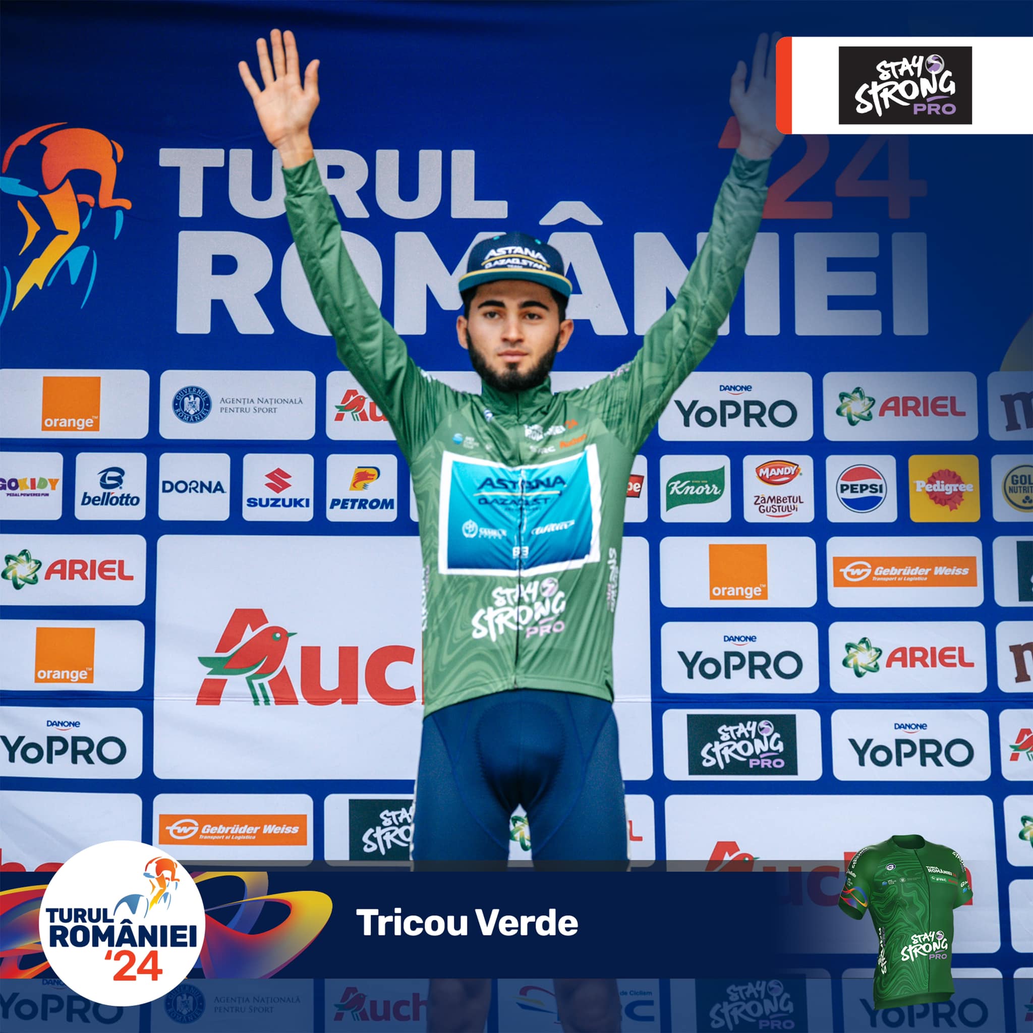 Tricoul verde, de lider în Clasamentul Cățărătorilor, sponsorizat de Stay Strong: DOSTIYEV Ilkhan, Astana Qazaqstan Development Team