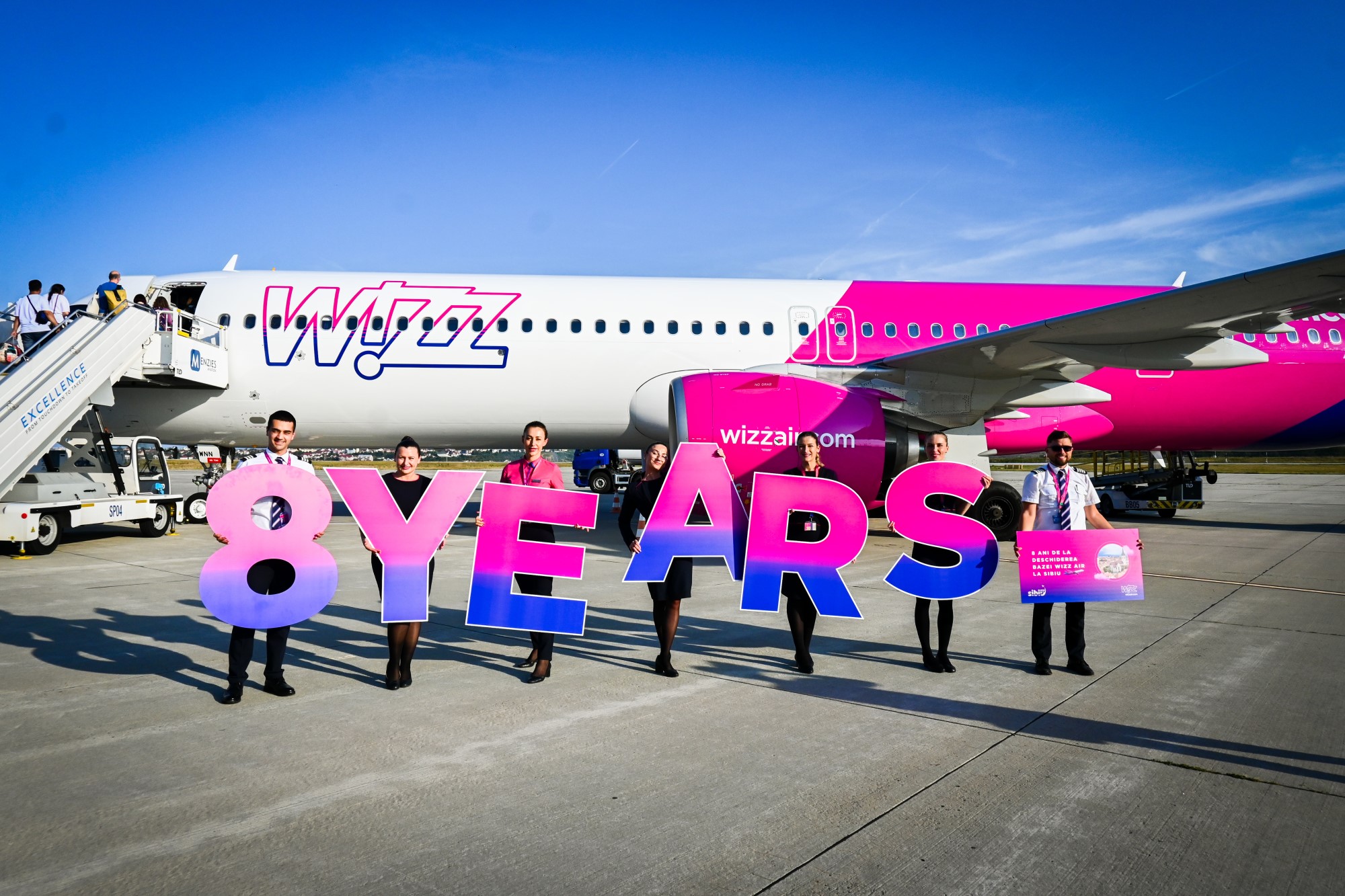 Wizz Air sărbătorește cea de-a 8-a aniversare a bazei sale de la Sibiu. În ultimii zece ani, Wizz Air a transportat peste 2,7 milioane de pasageri din Sibiu, consolidându-și poziția de companie aeriană lider în regiune, anunță luni reprezentanții companiei aeriere.