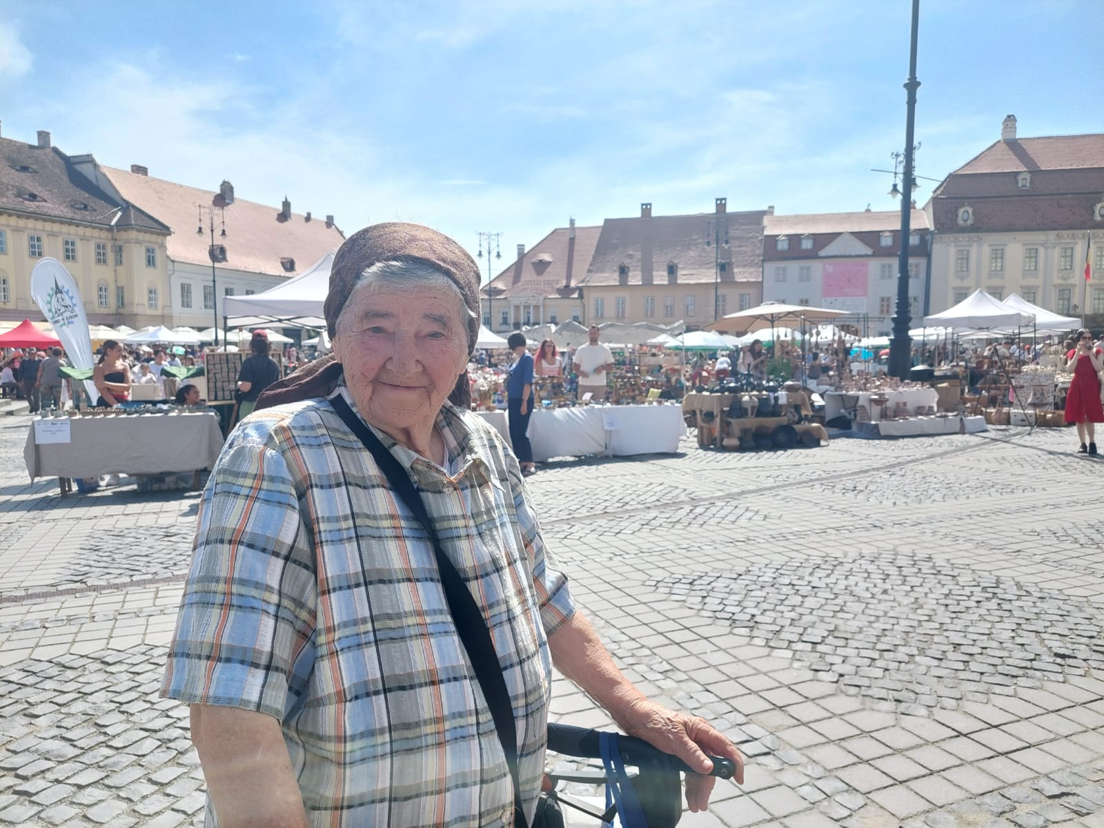 Sofia Răduțiu, la cei 91 de ani ai săi, se numără printre vizitatorii entuziasmați. Este bunica jurnalistei Iza Paulescu care o însoțește.