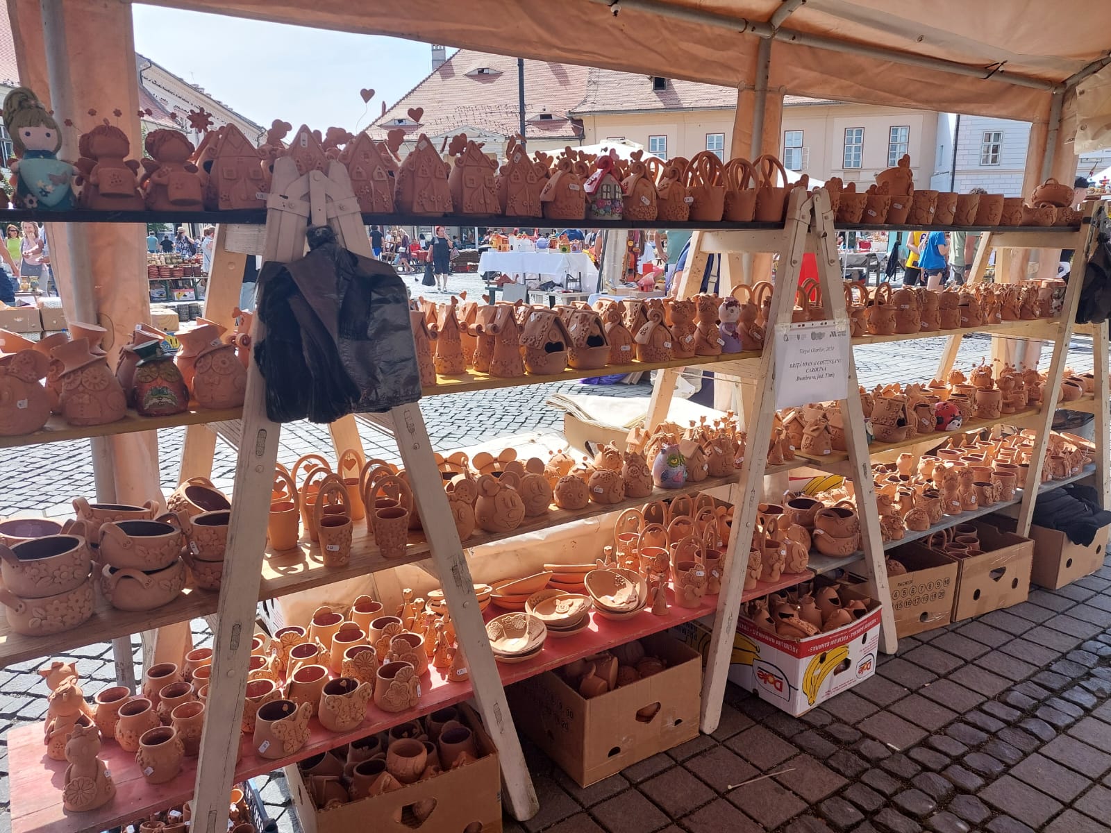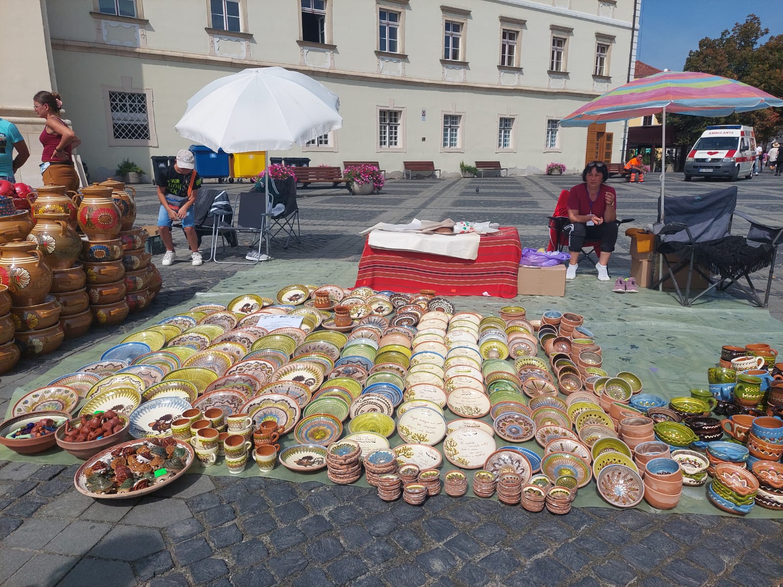 Căldura ultimei zile de vară care a făcut ca temperatura din termometre să depășească și sâmbătă 30 de grade nu i-a ținut pe sibieni în case. Printre evenimentele care au loc în acest weekend în Sibiu se numără și ediția din acest an a Târgului Olarilor.