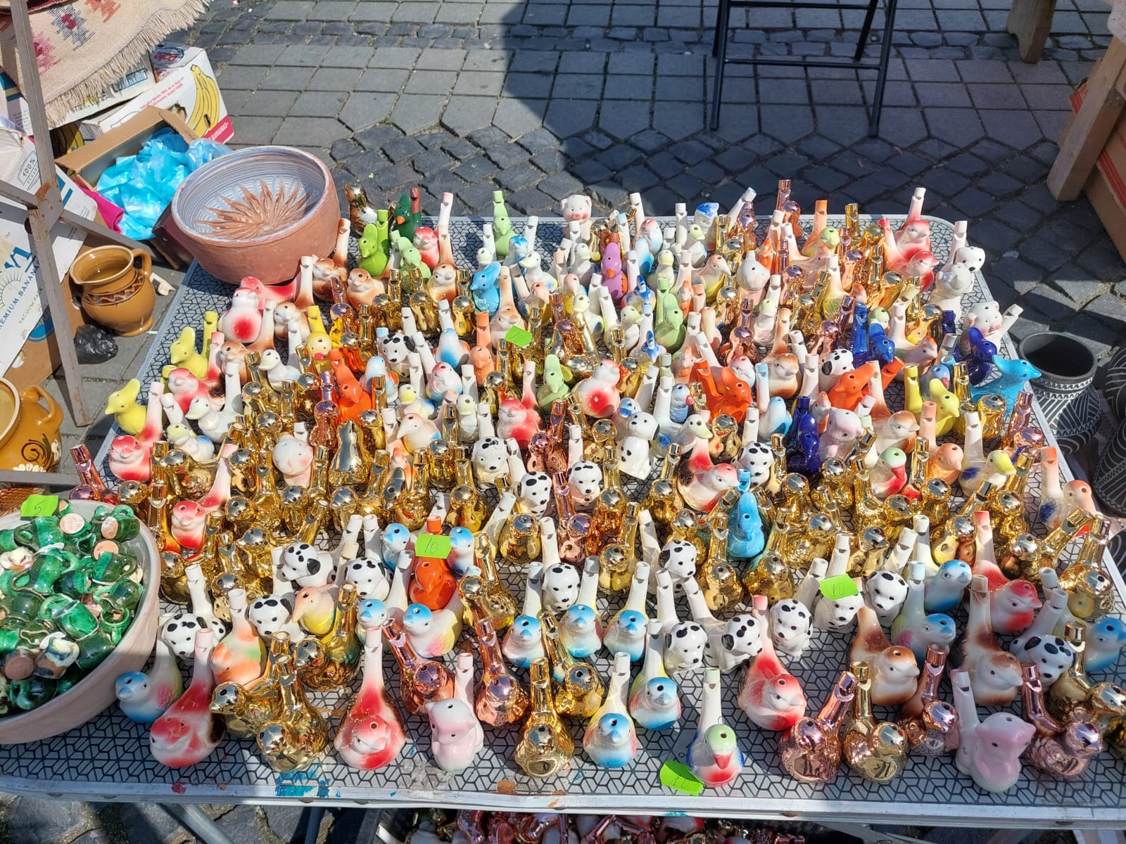 Și adevărul este că în întreg târgul se aud doar triluri de fluierici, acele păsări făcute din ceramică cu ajutorul cărora fluieri, ori dacă pui puțină apă poți cânta.