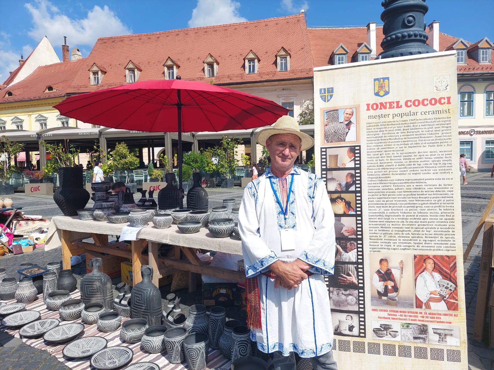 „Eram student când veneam la Sibiu și acum am 48 de ani. Era d-l Bucur director pe vremea aceea. Majoritatea ceramicii de pe stand este făcută de mână, iar totul este pictat manual. Modelele sunt unicat și nu se repetă modelele decât dacă avem o comandă specială în acest sens. Sunt creații proprii sau inspirate din folclor, dar nimic nu este copiat de undeva”, spune Dragoș.