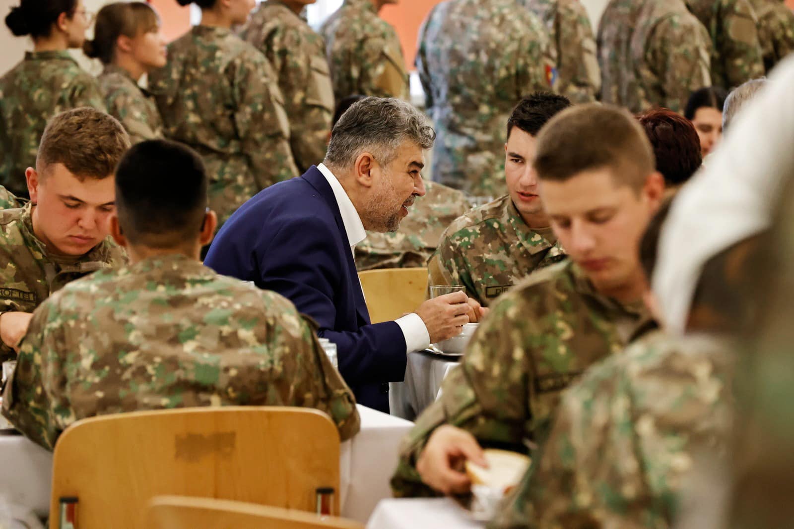 „Sunt tineri. Sunt frumoși. Sunt deștepți. Ei sunt viitorii lideri ai Armatei Române. A fost o plăcere să iau masa astăzi cu studenții Academiei Forțelor Terestre “Nicolae Bălcescu” din Sibiu. E drept, nu am mâncat fasole verde teci, dar a fost foarte foarte bun,” a scris premierul pe pagina de facebook.