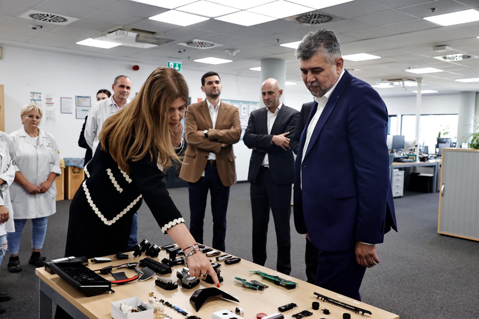 La Marquardt, premierul a fost însoțit de deputatul Bogdan Trif și senatorul Claudiu Mureșan. Aceștia au asistat la o prezentare a fabricii și a stat de vorbă cu angajații.