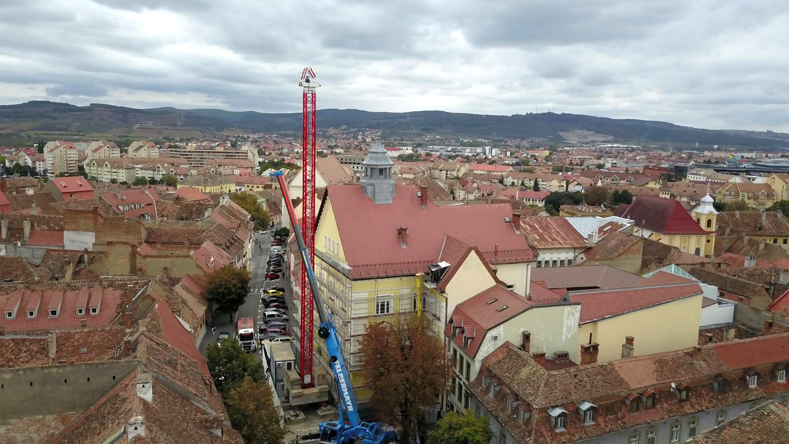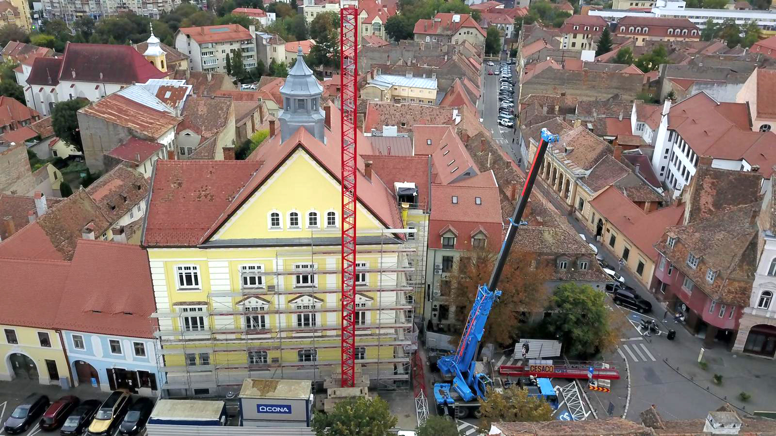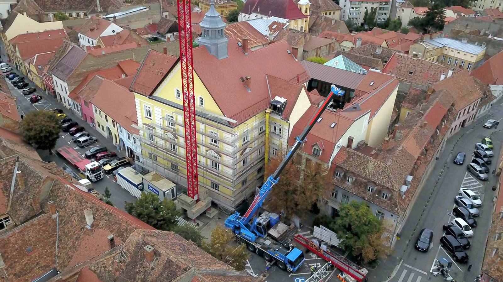 Președinta Consiliului Județean Sibiu a anunțat, marți după-amiaza, că lângă sediul administrației județene a fost montată o macara de mari dimensiuni.