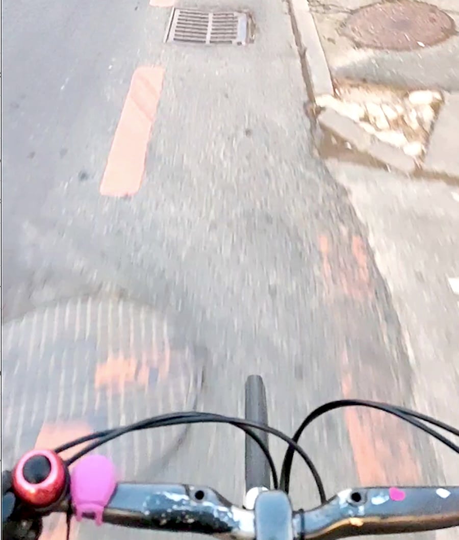 In filmare arata putin mai bine decat in realitate. Camera e atasata pe corp si parte din vibratii sunt atenuate. Ar fi fost mai relevanta o filmare cu camera prinsa direct pe ghidon. Oricum, buna initiava de a atrage atentia. Si probabil solutia e foarte simpla fara modificari de anvergura: chiar si pastrate canalele actuale, se pot pune scurgerile in bordura nu direct pe carosabil si macar nu ai mai fi nevoit sa ocolesti canalele iesind de pe jumatea aia de pista de biciclete…