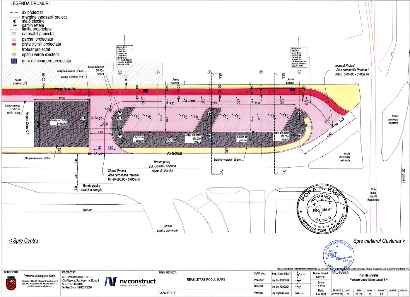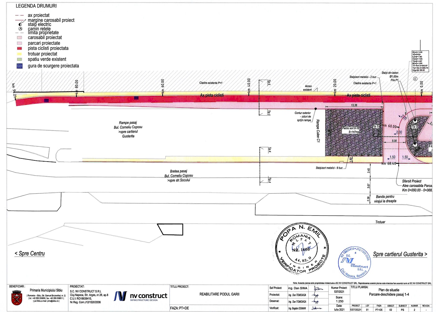 În ceea ce privește pista de biciclete prevăzută în contract, și aceasta va fi amenajată tot pe sub pod. Aceasta va înlocui pista marcată pe carosabilul până la începerea lucrărilor, în partea dinspre Gara Sibiu a podului.