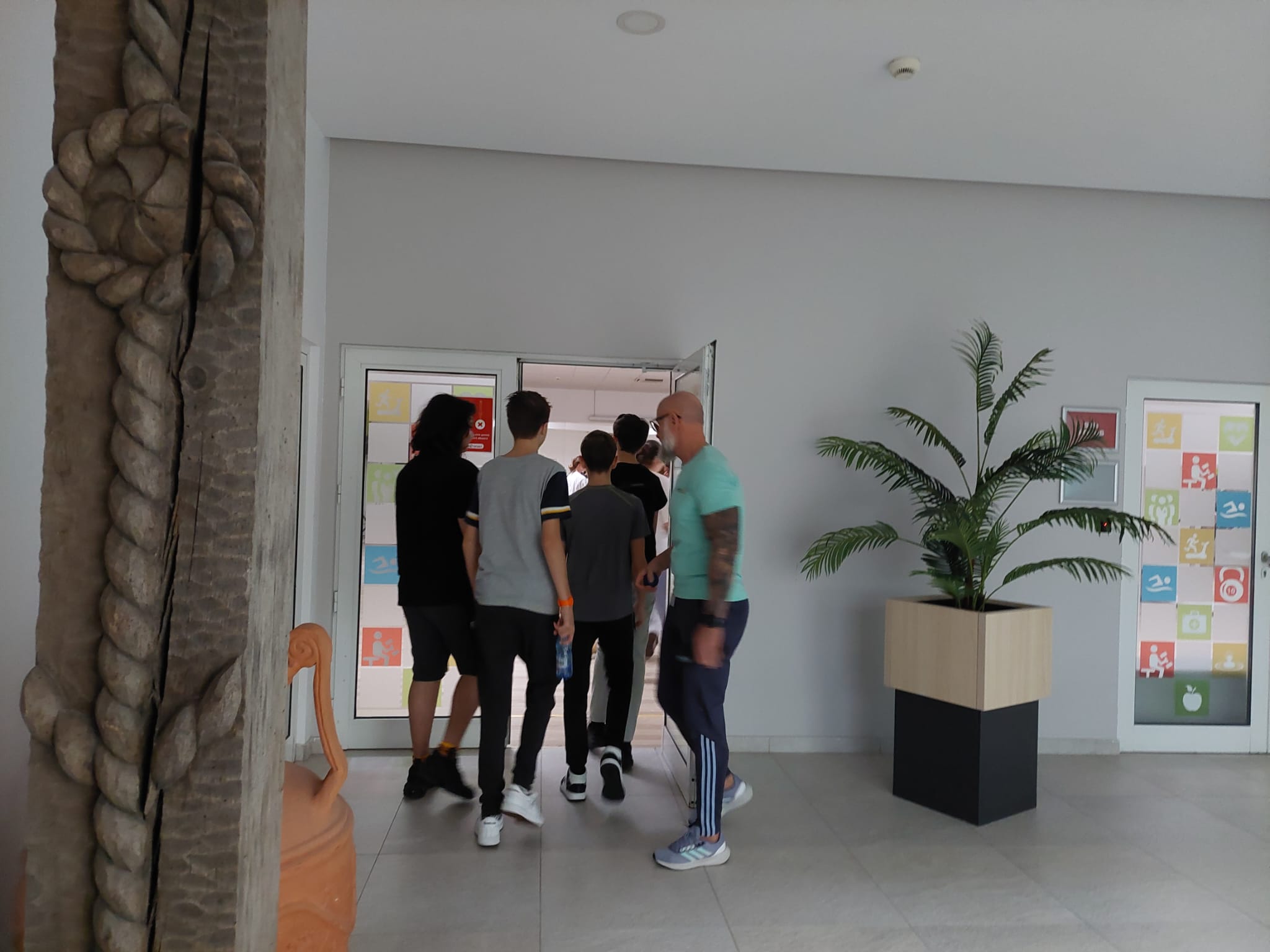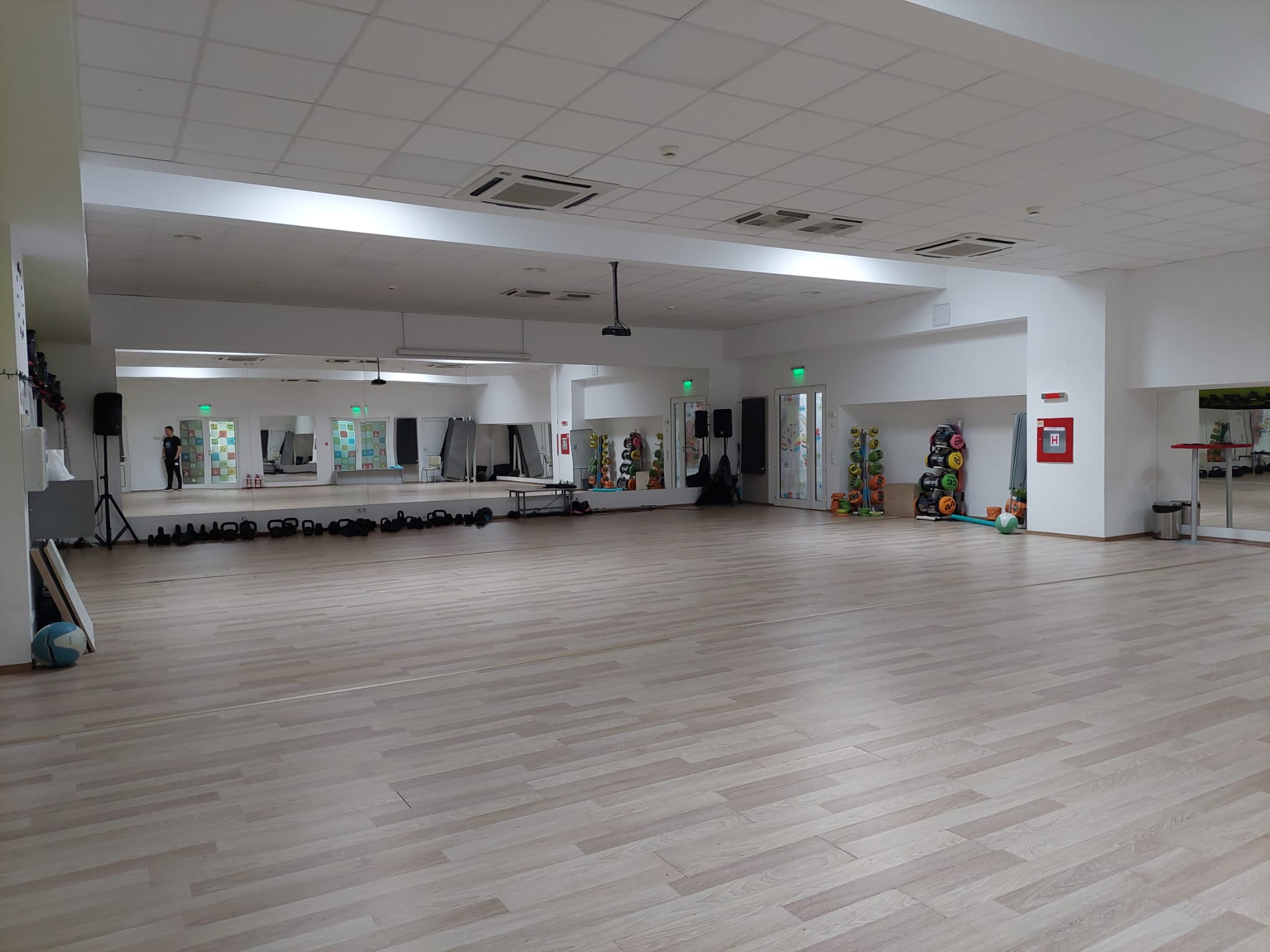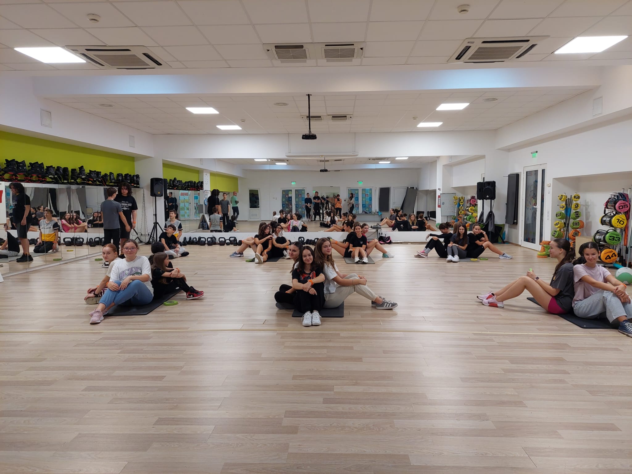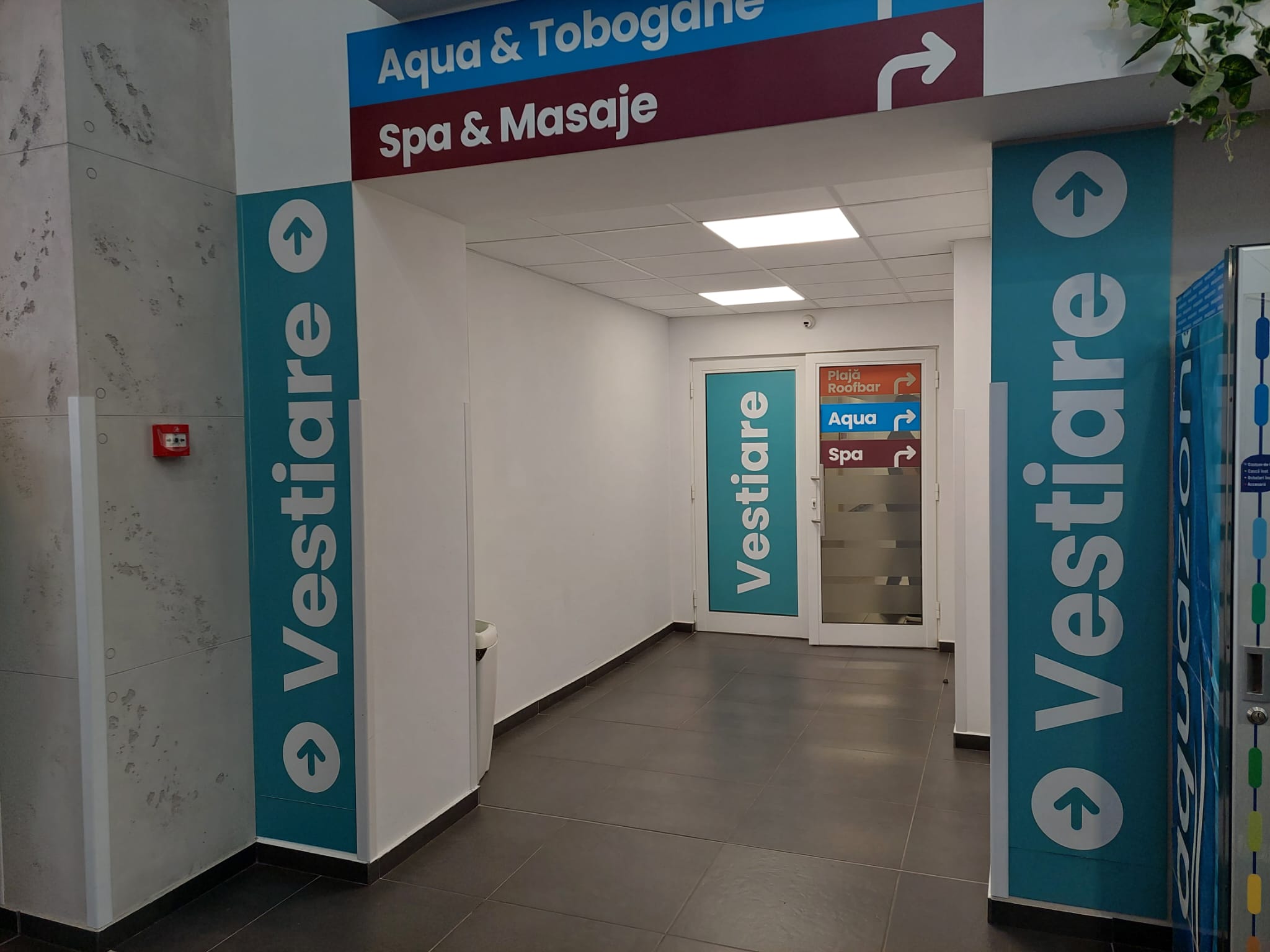 Imediat cum intri în clădirea celor de la Aria, în dreapta de recepție, este un mic amfiteatru. Acolo se adună elevii care urmează să intre la piscine, în timp ce tura precedentă este pe ultima sută de metri cu îmbrăcatul și uscatul.