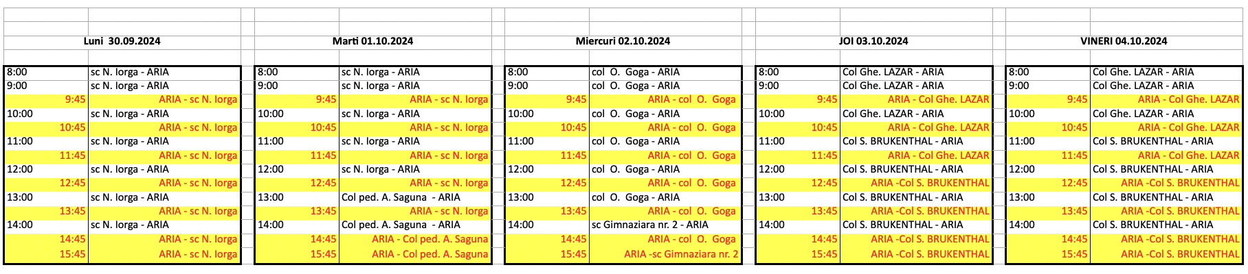 Așa arată programul de săptămâna trecută a școlilor care au ajuns cu elevii la Aria