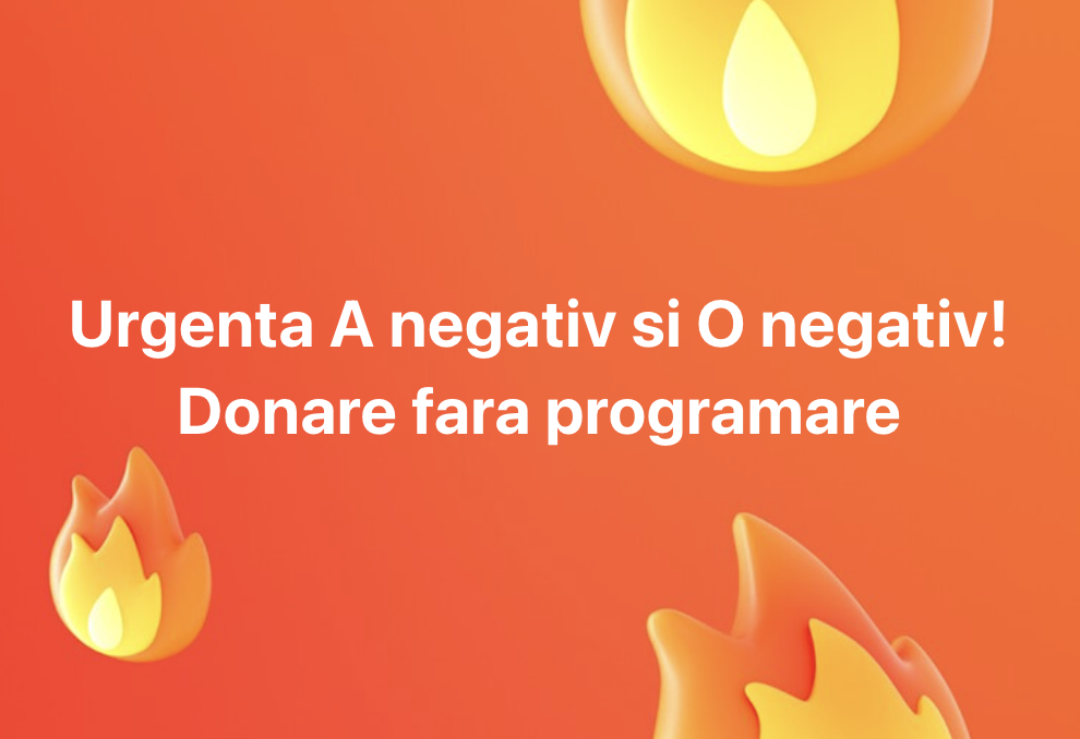 În acest moment la Centrul de Transfuzie Sanguină Sibiu este nevoie urgentă de sânge pentru grupele A cu RH negativ și 0 cu RH negativ. Donatorii pot veni fără programare.