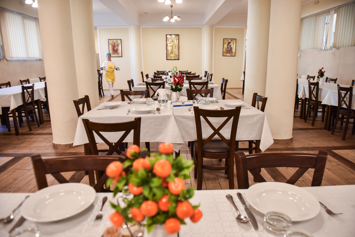 „Mâncarea o fac cu multă grijă. Nu prăjim aproape deloc. Facem totul la cuptor sau fiert. Folosim zarzavat proaspăt și carne proaspătă. Nu avem congelate. Părintele Bogdan Fluieraș este cel care se ocupă de cantină și are grijă să nu ne lipsească nimic. Și de două, trei ori pe săptămână dacă este nevoie facem aprovizionarea.”