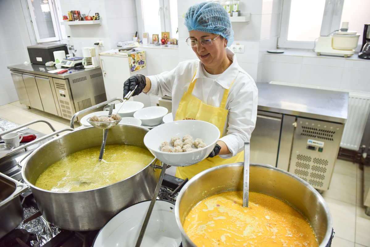 „Marți și joi gătim peste 100 de porții pentru oameni în vârstă, oameni care nu mai au pe nimeni sau oameni necăjiți.”