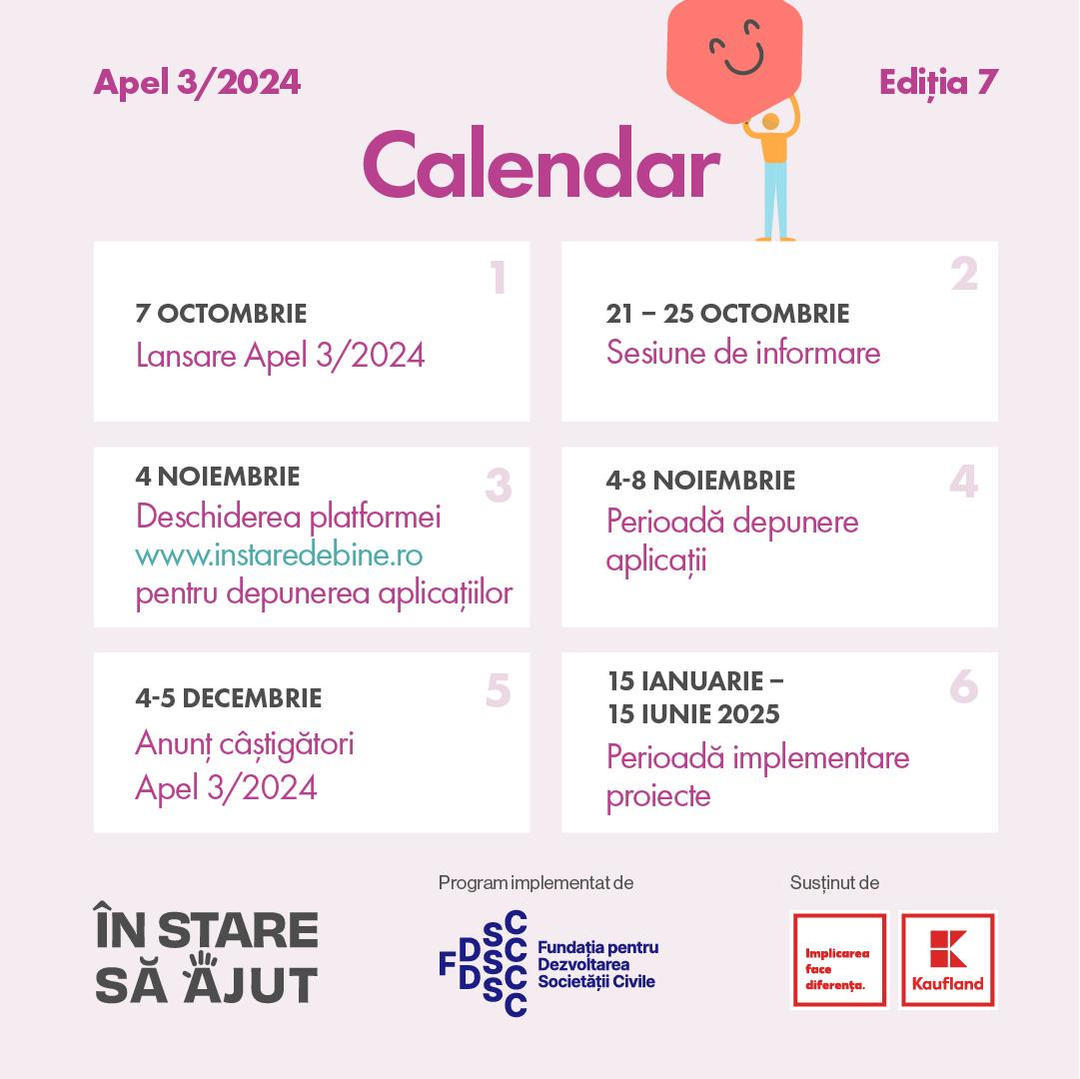 Acest apel de proiecte se desfășoară în cadrul programului În Stare de Bine, implementat în România de Fundația pentru Dezvoltarea Societății Civile (FDSC) și finanțat integral de Kaufland România, prin trei apeluri de proiecte organizate în fiecare an. Actualul apel, #ÎnStareSăAjut, este ultimul din 2024.