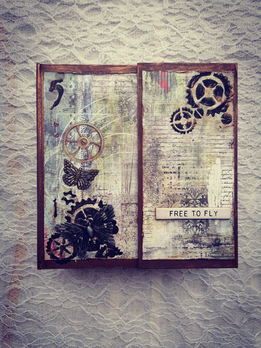 „Albumele le construiesc de la zero, jurnalele, o parte din ele sunt reciclate din cărți foarte vechi pe care le cumpăr din anticariate, de regulă online. Sunt pagini simple pe care poți scrie, pagini din cărți, pagini cu imagini, poți face din el jurnal de călătorie în care pui fotografii, în care scrii memorii despre călătorie.