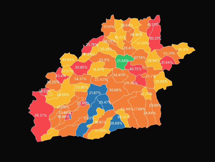 Dacă la nivelul întregului județ, procentele indică faptul că liberalii sunt câștigători, dacă luăm rezultatele separat, în funcție de fiecare unitate teritorial-administrativă (UAT), rezultă că reprezentanții AUR se bucură în acest moment de cea mai răspândită susținere: listele de candidați stabilite de la București au fost cele mai votate în șase din cele nouă orașe și în alte 21 de comune. Comparativ, liberalii au câștigat un municipiu (Mediașul) și trei orașe, plus alte 17 comune.