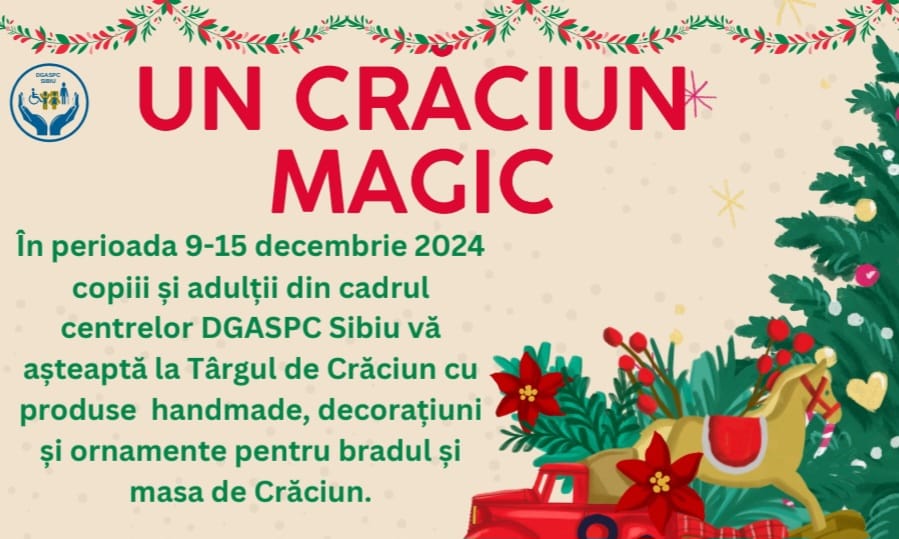 „Exprimă-ți iubirea printr-un dar deosebit și descoperă alături de copiii si adulții centrelor DGASPC Sibiu, cadouri minunate realizate cu multă migală și dăruire! Fiecare piesă e un mic simbol al bucuriei și dragostei pentru cei dragi! Vă așteptăm la Căsuța Asociațiilor, lângă Bradul de Crăciun din Piața Mare!”, transmit organizatorii.